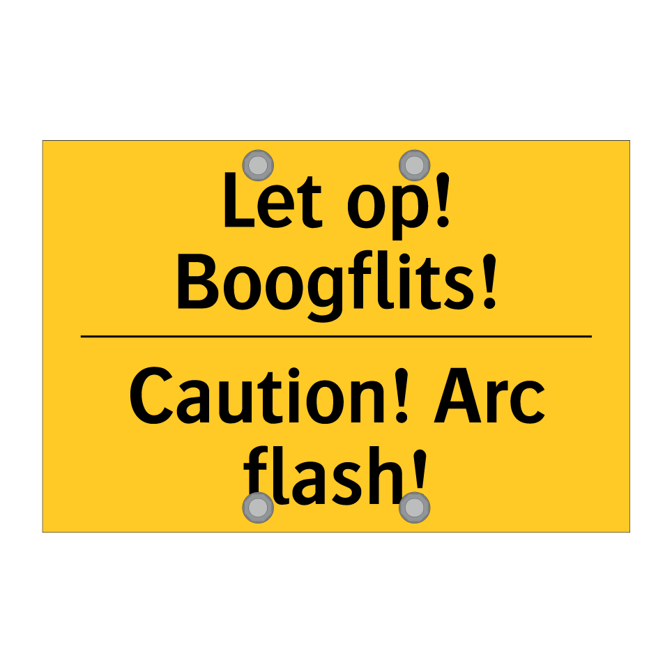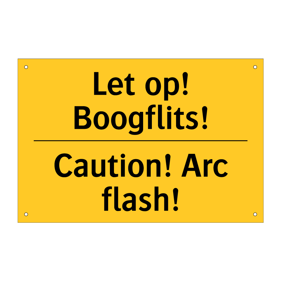 Waarschuwingsbord met de tekst Let op! Boogflits! / Caution! Arc flash!