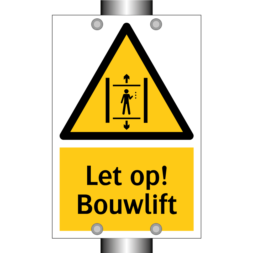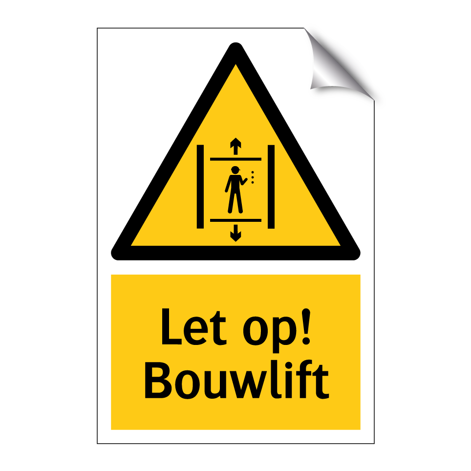 Waarschuwingsbord met de tekst Let op! Bouwlift