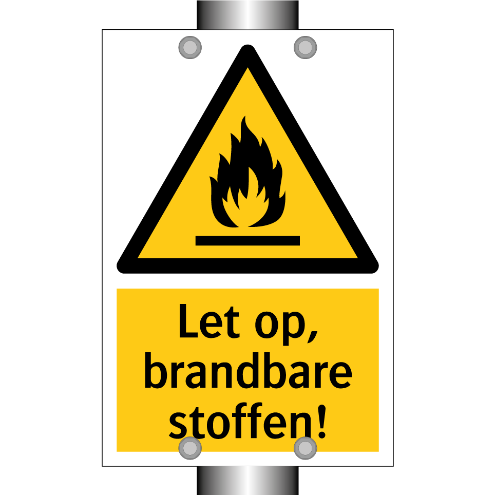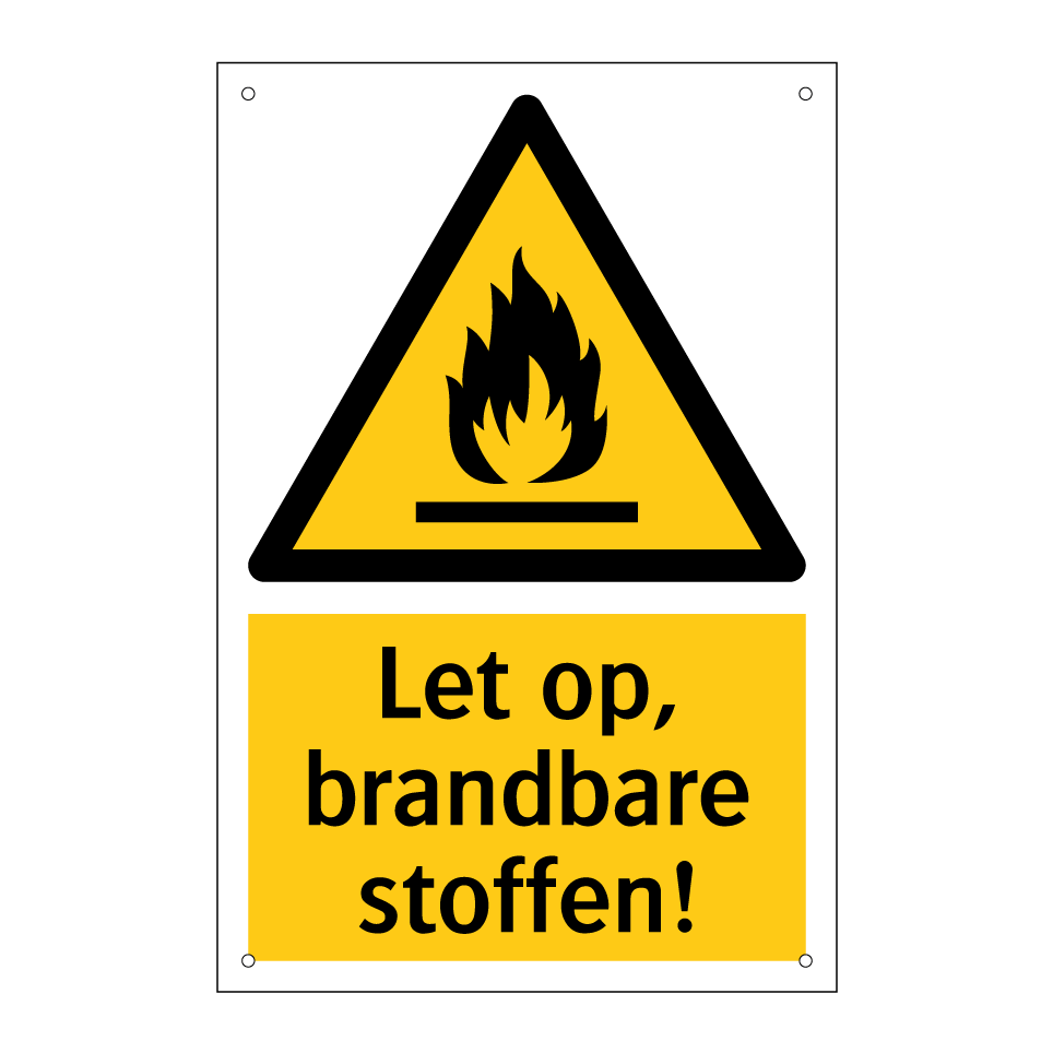Waarschuwingsbord met de tekst Let op, brandbare stoffen!
