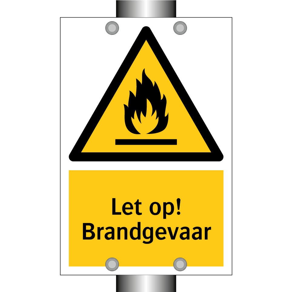 Waarschuwingsbord met de tekst Let op! Brandgevaar