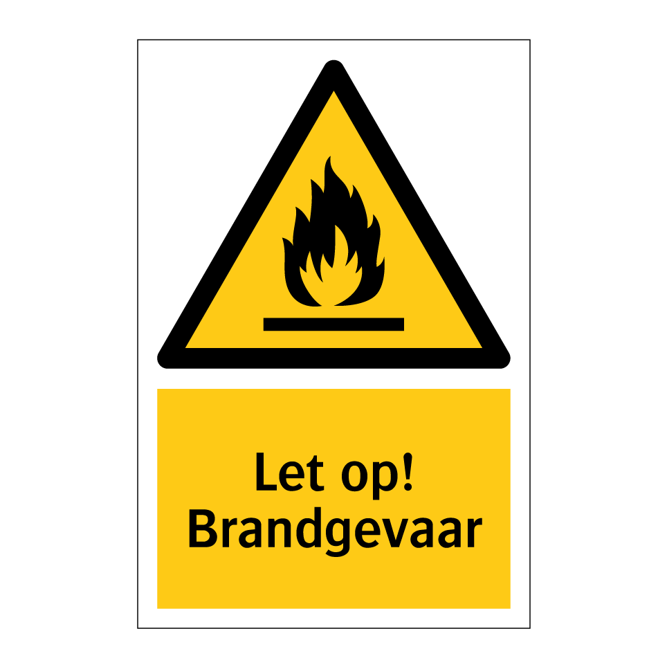 Deze waarschuwingsbord is essentieel voor het waarborgen van de veiligheid in omgevingen met een verhoogd risico op brand. Plaats deze bord op strategische locaties zoals bij ingangen van gebouwen, in magazijnen, werkplaatsen, en andere gebieden waar brandgevaar aanwezig is. Door deze bord duidelijk zichtbaar te maken, kunnen werknemers en bezoekers tijdig gewaarschuwd worden voor potentiële brandrisico's. Dit waarschuwingsbord helpt bij het voorkomen van ongelukken en bevordert een veilige werkomgeving. Ideaal voor zowel binnen- als buitengebruik, zorgt deze bord ervoor dat iedereen alert blijft op brandgevaarlijke situaties.
