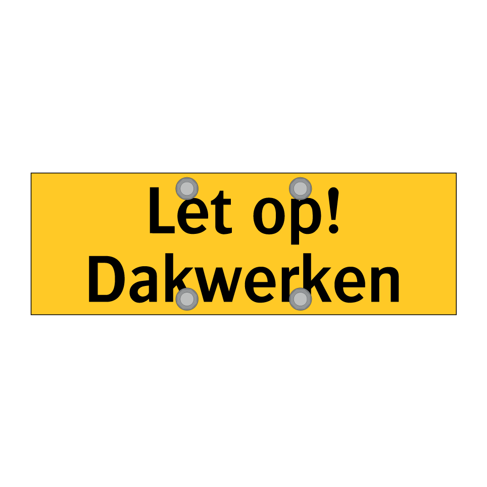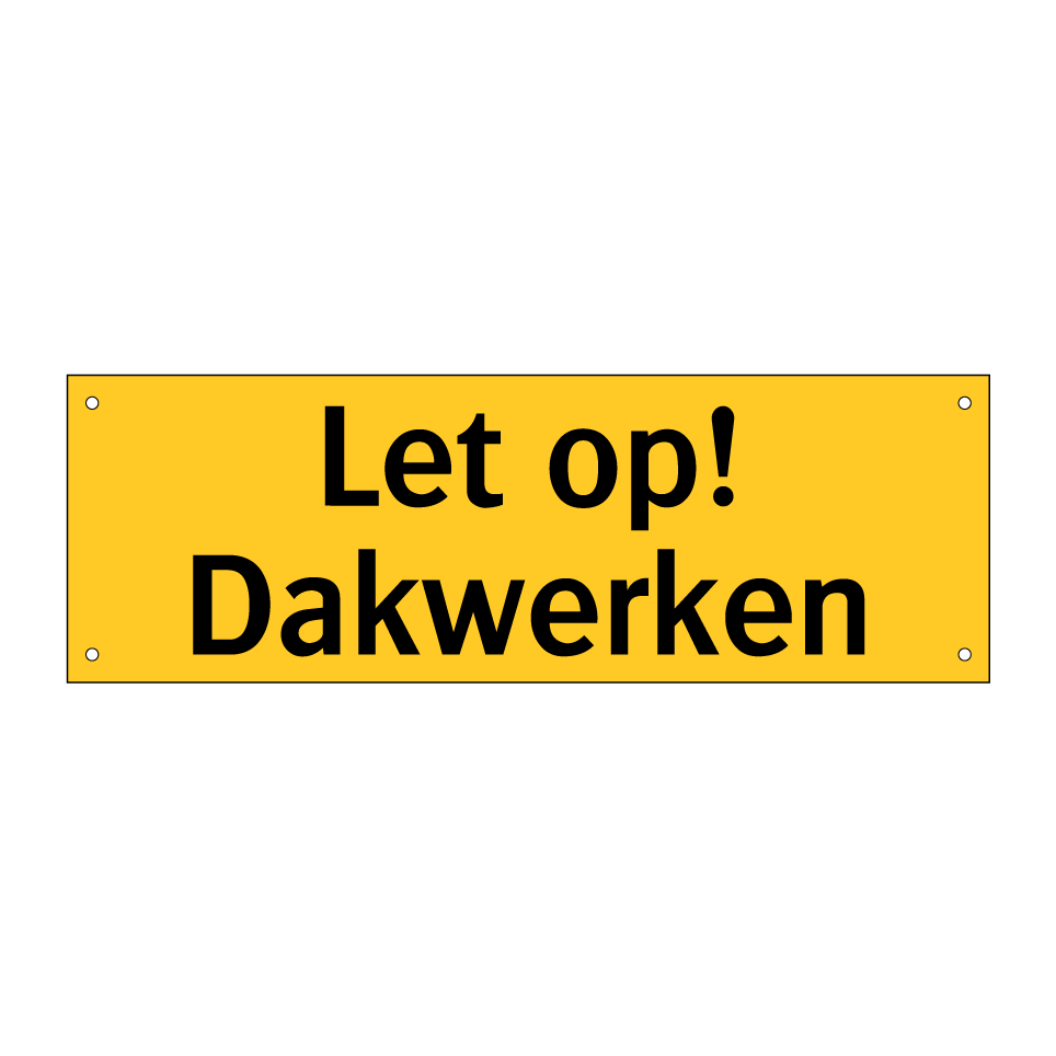Waarschuwingsbord met de tekst Let op! Dakwerken