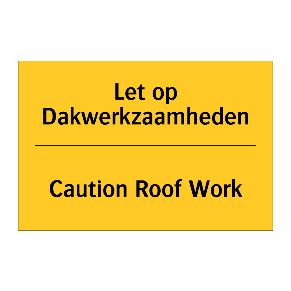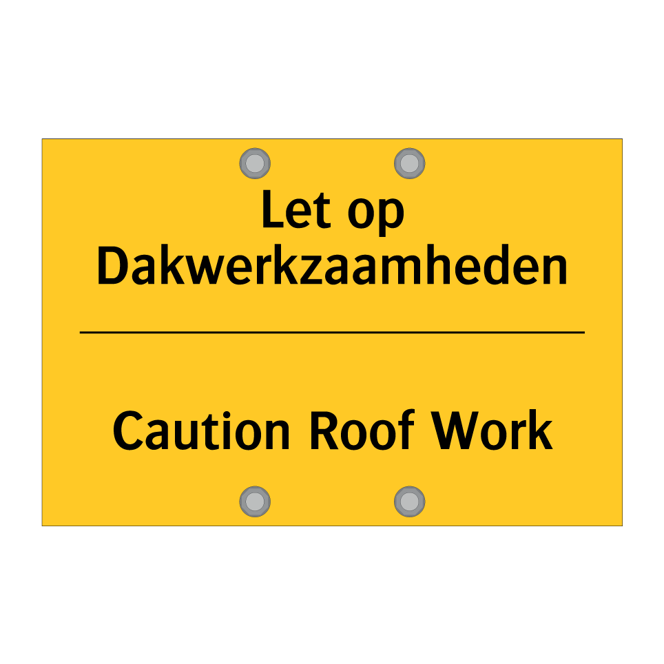 Waarschuwingsbord met de tekst Let op Dakwerkzaamheden / Caution Roof Work