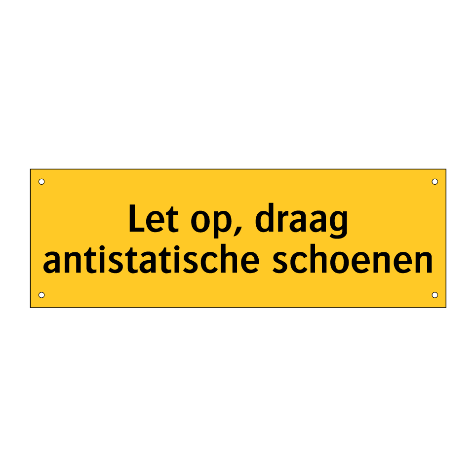 Waarschuwingsbord met de tekst Let op, draag antistatische schoenen