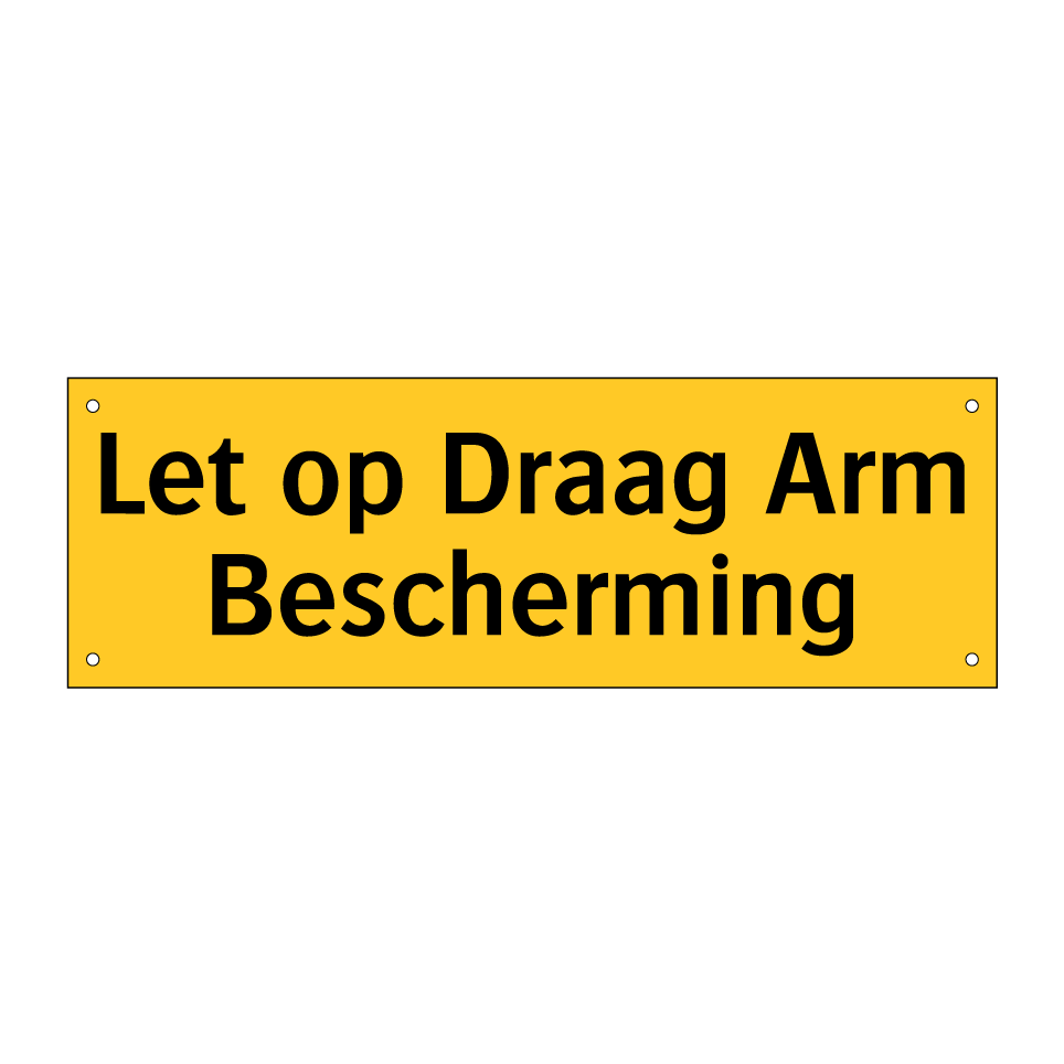 Waarschuwingsbord met de tekst Let op Draag Arm Bescherming