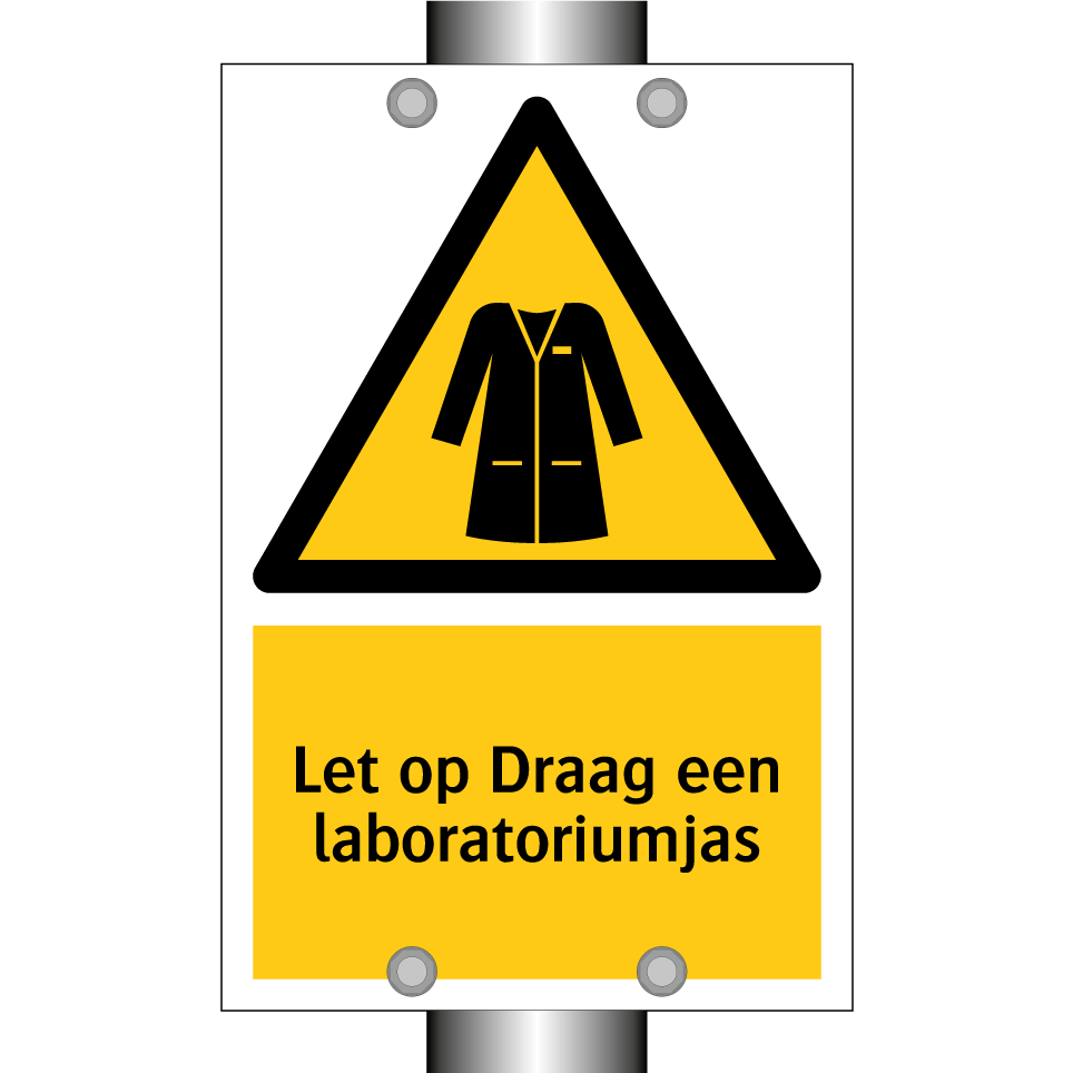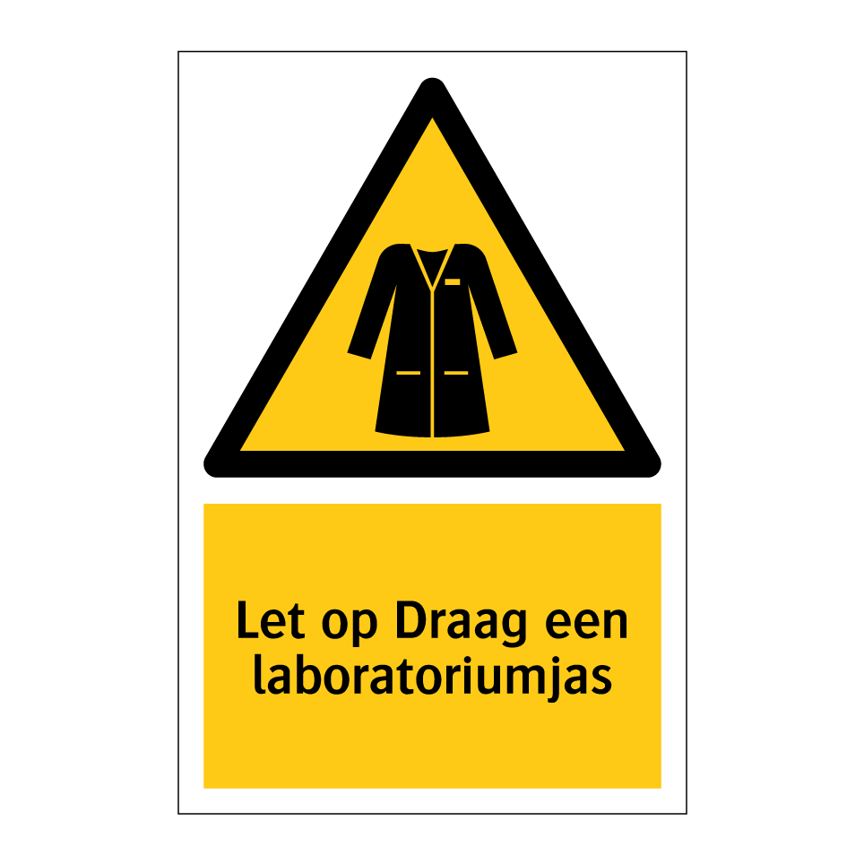 Waarschuwingsbord met de tekst Let op Draag een laboratoriumjas