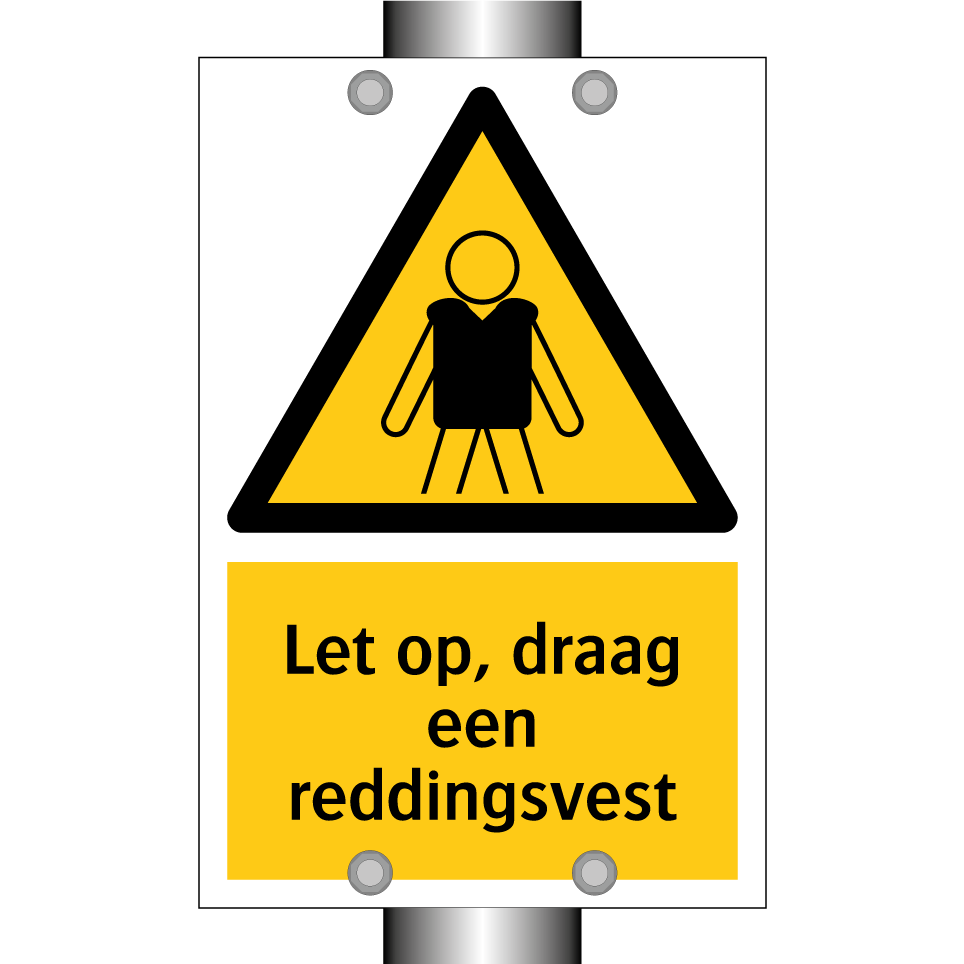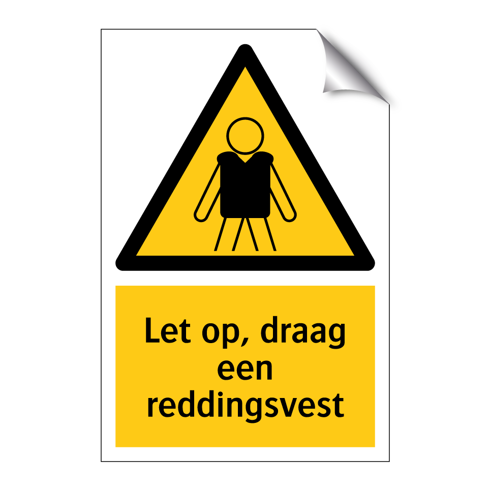 Waarschuwingsbord met de tekst Let op, draag een reddingsvest