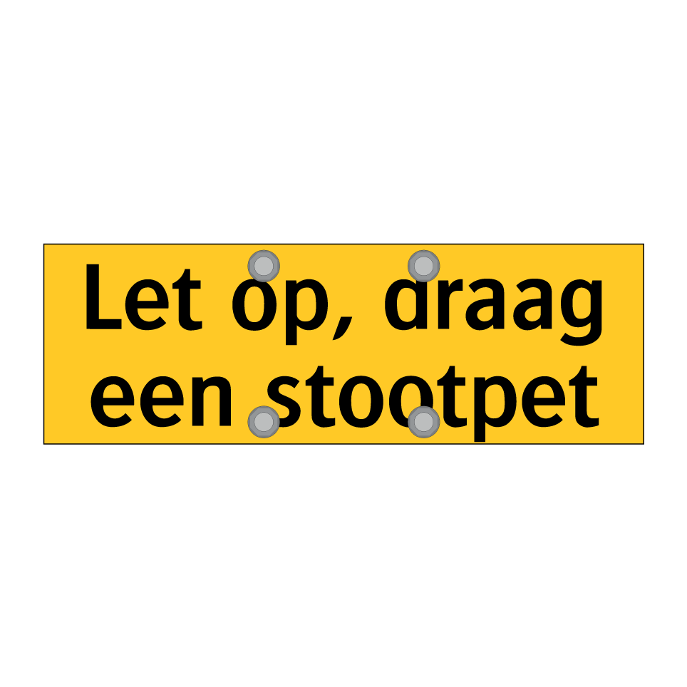 Waarschuwingsbord met de tekst Let op, draag een stootpet