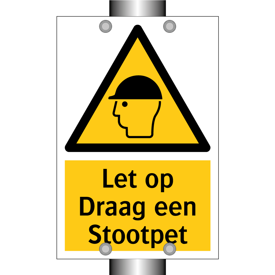 Waarschuwingsbord met de tekst Let op Draag een Stootpet