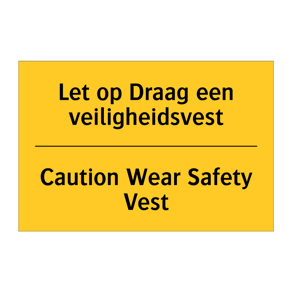 Waarschuwingsbord met de tekst Let op Draag een veiligheidsvest / Caution Wear Safety Vest
