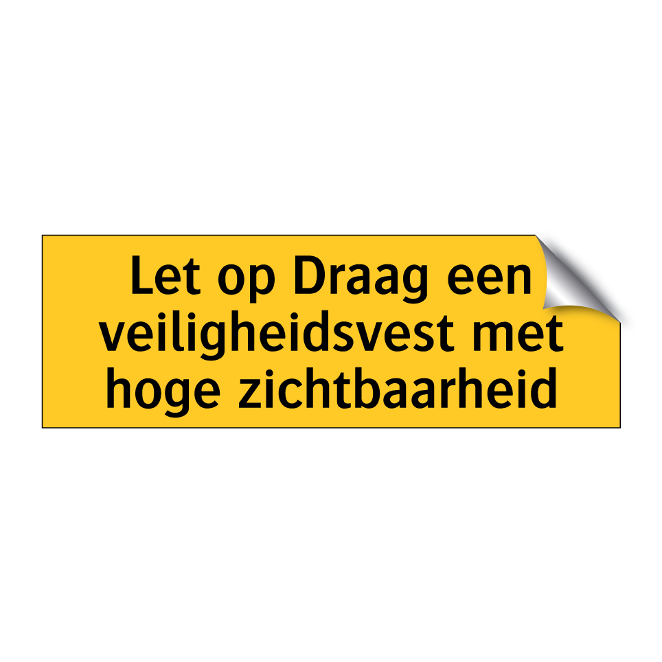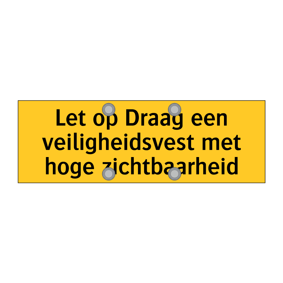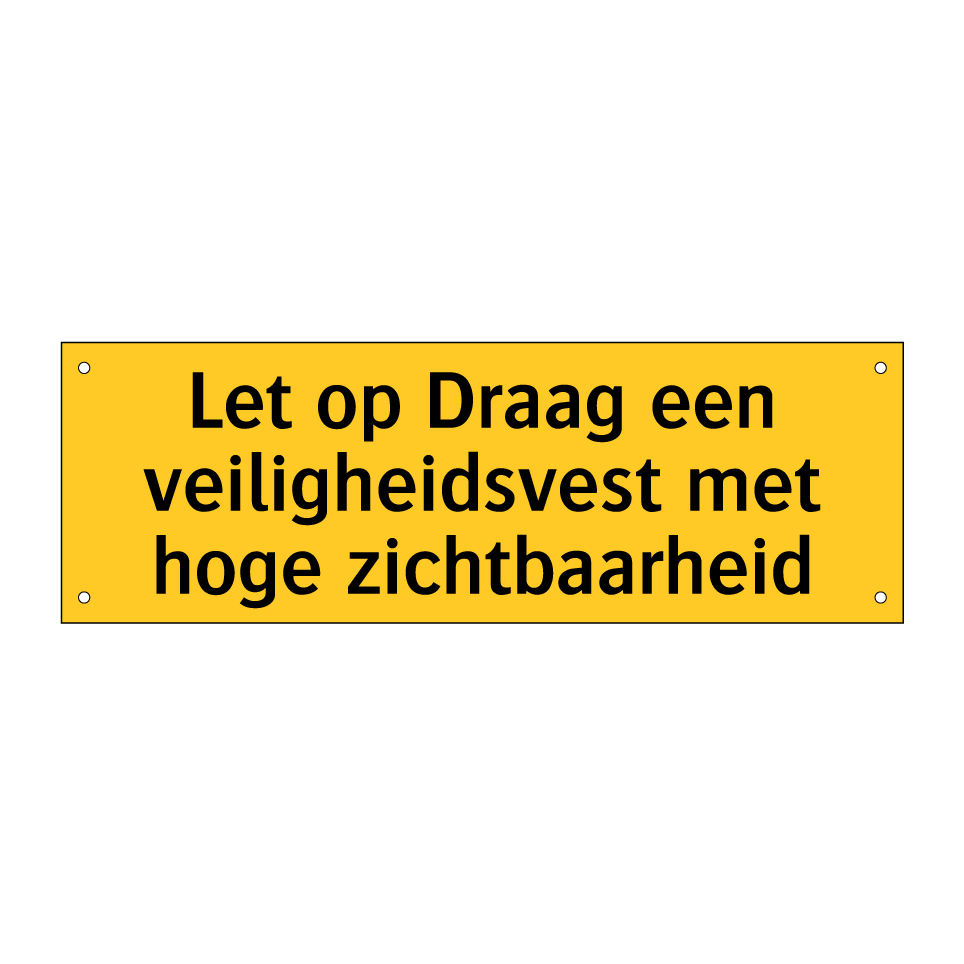 Waarschuwingsbord met de tekst Let op Draag een veiligheidsvest met hoge zichtbaarheid