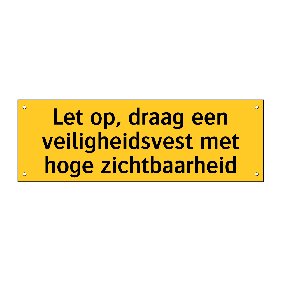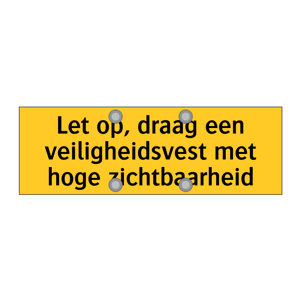 Waarschuwingsbord met de tekst Let op, draag een veiligheidsvest met hoge zichtbaarheid