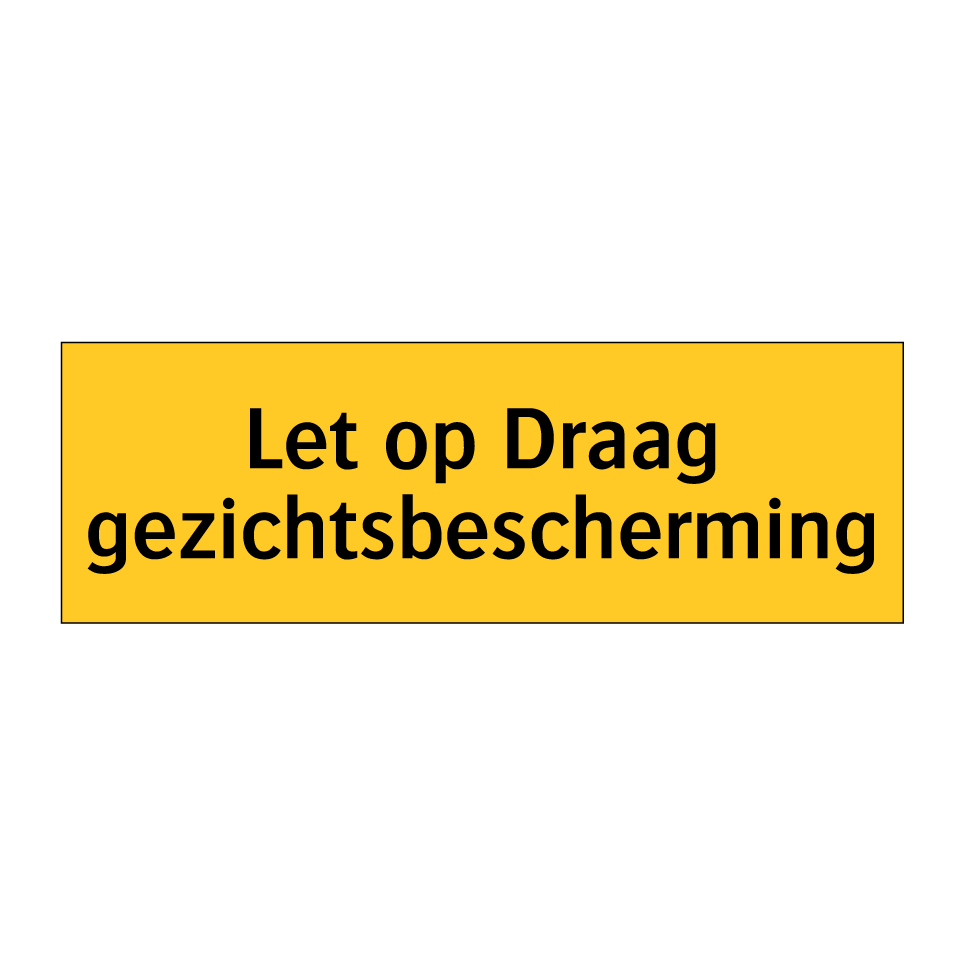 Waarschuwingsbord met de tekst Let op Draag gezichtsbescherming