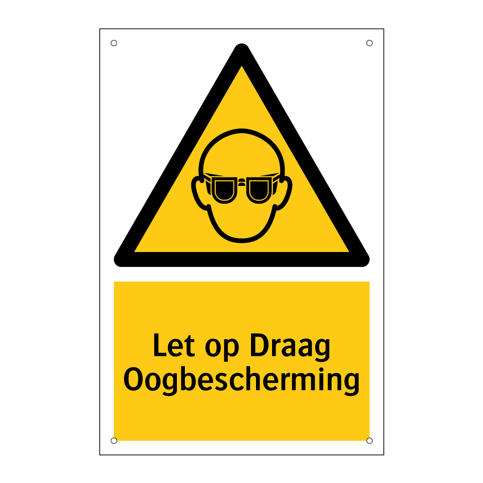 Waarschuwingsbord met de tekst Let op Draag Oogbescherming
