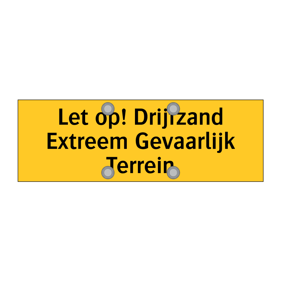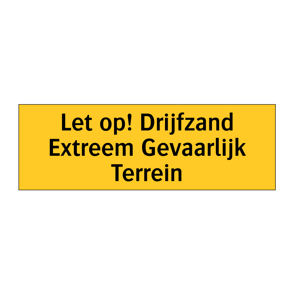 Waarschuwingsbord met de tekst Let op! Drijfzand Extreem Gevaarlijk Terrein