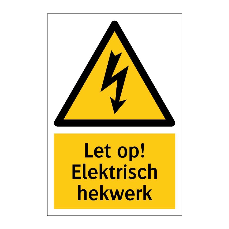 Waarschuwingsbord met de tekst Let op! Elektrisch hekwerk