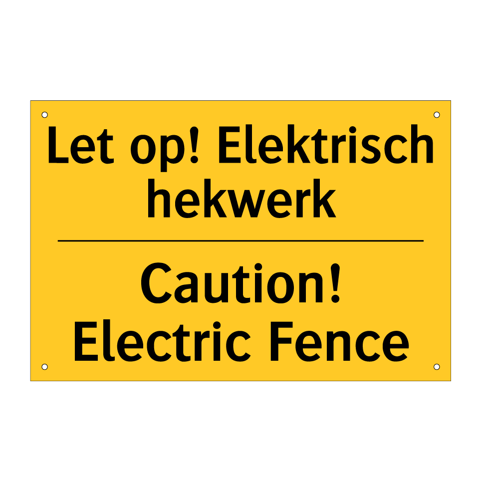 Waarschuwingsbord met de tekst Let op! Elektrisch hekwerk / Caution! Electric Fence