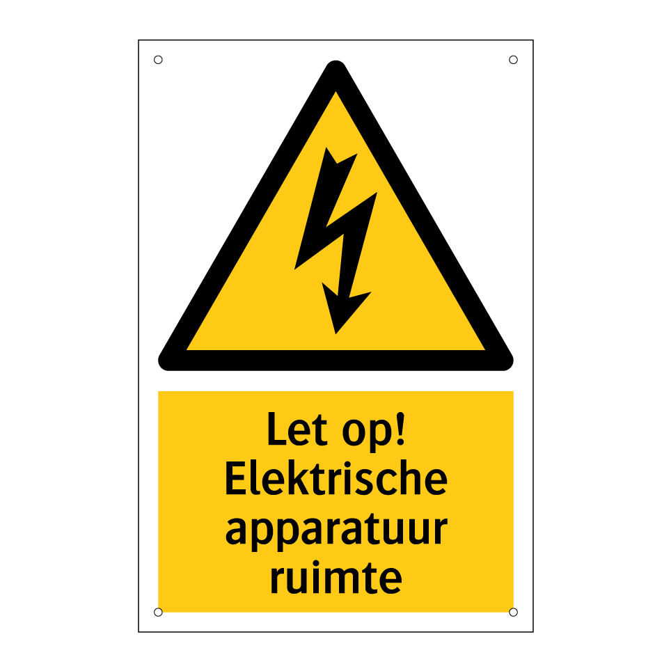 Waarschuwingsbord met de tekst Let op! Elektrische apparatuur ruimte
