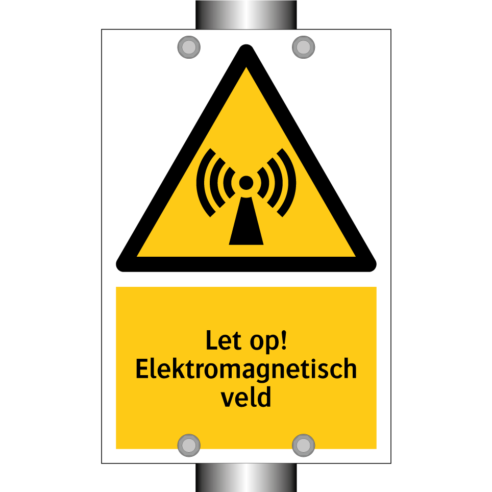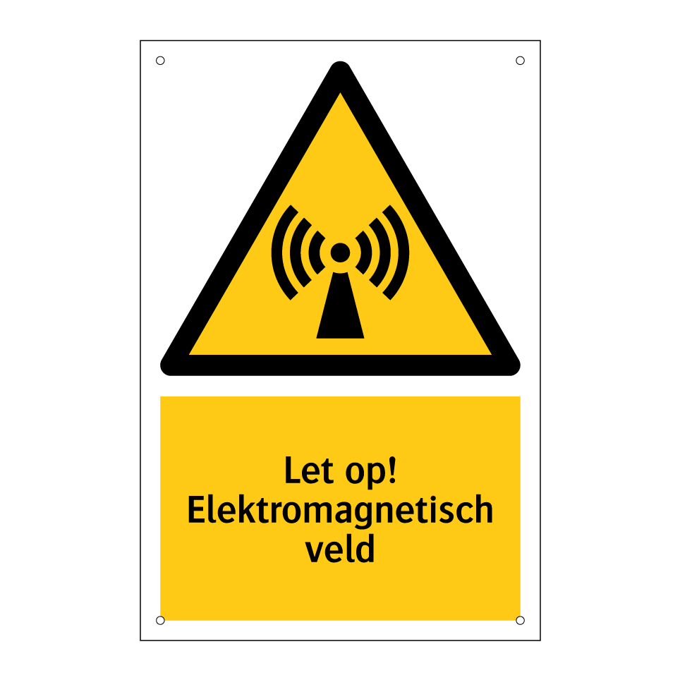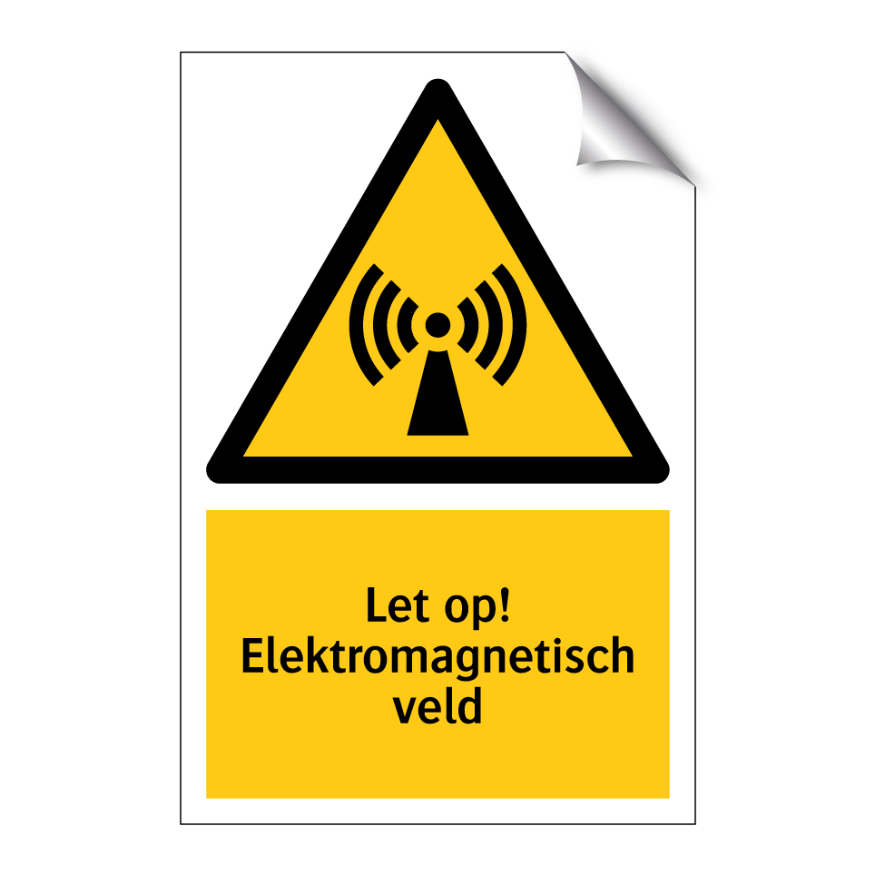 Waarschuwingsbord met de tekst Let op! Elektromagnetisch veld