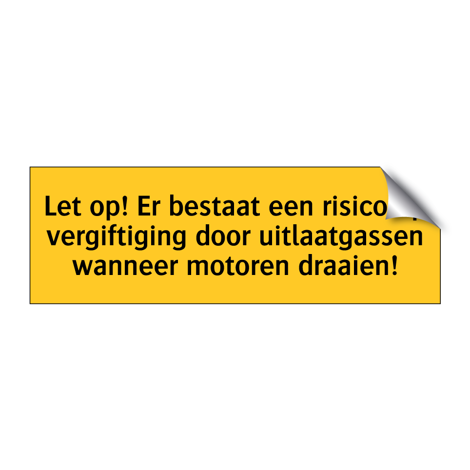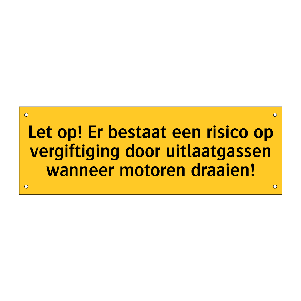 Waarschuwingsbord met de tekst Let op! Er bestaat een risico op vergiftiging door uitlaatgassen wanneer motoren draaien!