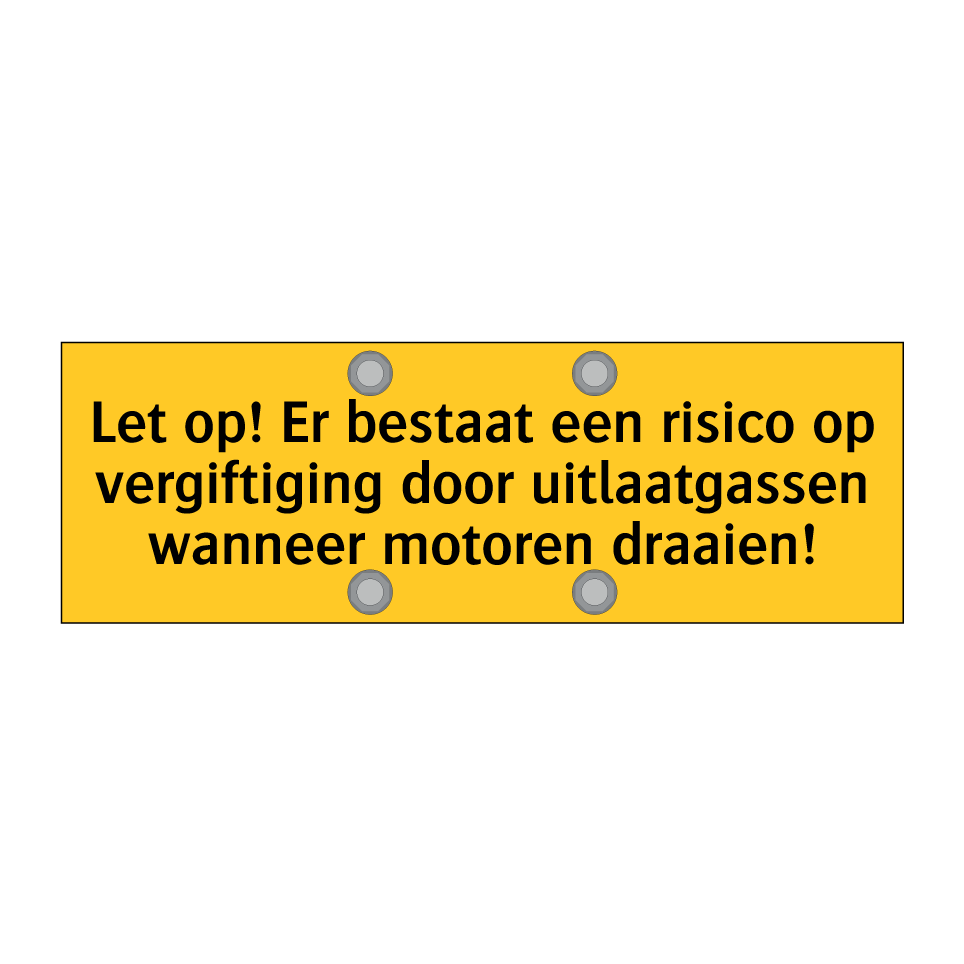Deze waarschuwingsbord is essentieel voor het waarborgen van de veiligheid in omgevingen waar motoren draaien. Plaats deze bord op goed zichtbare locaties zoals werkplaatsen, garages, en industriële ruimtes om mensen te waarschuwen voor het risico op vergiftiging door uitlaatgassen. Door de opvallende gele achtergrond en zwarte tekst trekt deze bord onmiddellijk de aandacht, waardoor het risico op gevaarlijke situaties aanzienlijk wordt verminderd. Ideaal voor gebruik in zowel binnen- als buitenruimtes waar motoren regelmatig in werking zijn. Zorg ervoor dat iedereen op de hoogte is van de potentiële gevaren en voorkom ongelukken met deze duidelijke en effectieve waarschuwingsbord.
