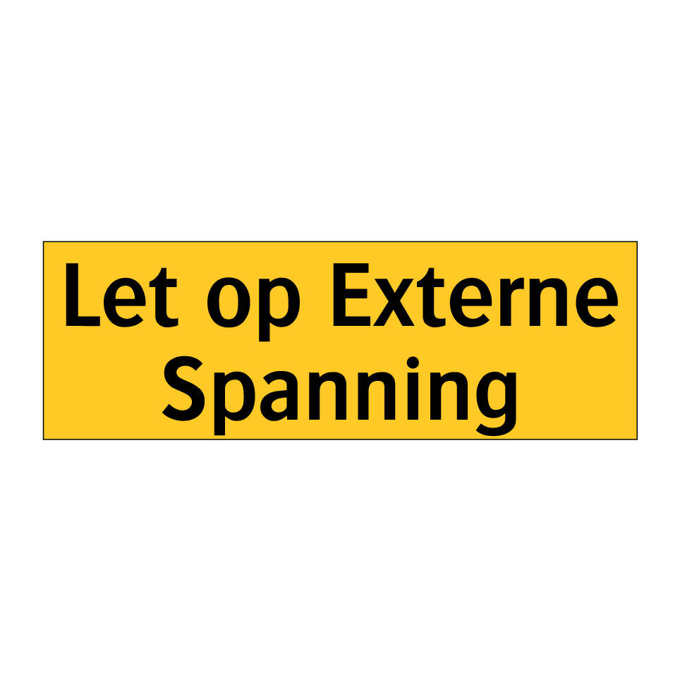 Waarschuwingsbord met de tekst Let op Externe Spanning