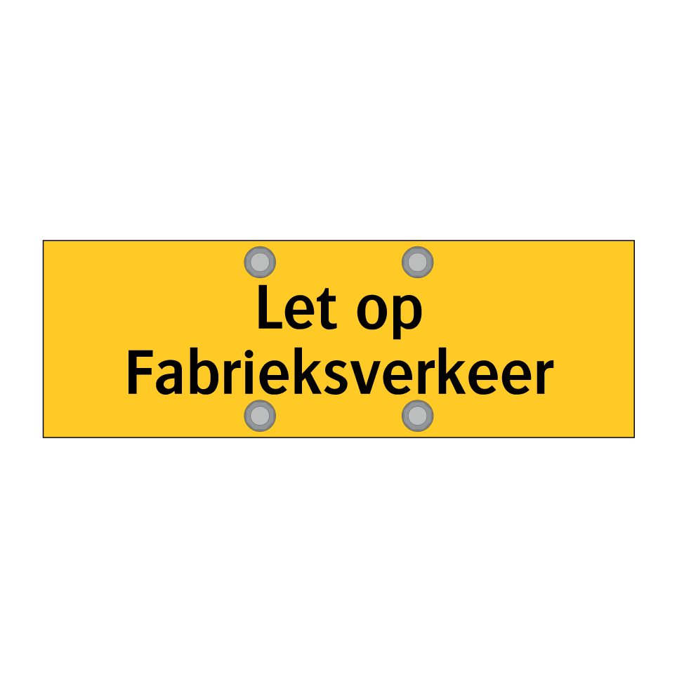 Waarschuwingsbord met de tekst Let op Fabrieksverkeer