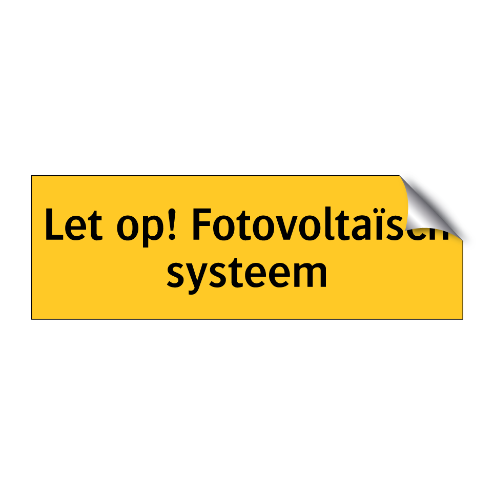Waarschuwingsbord met de tekst Let op! Fotovoltaïsch systeem