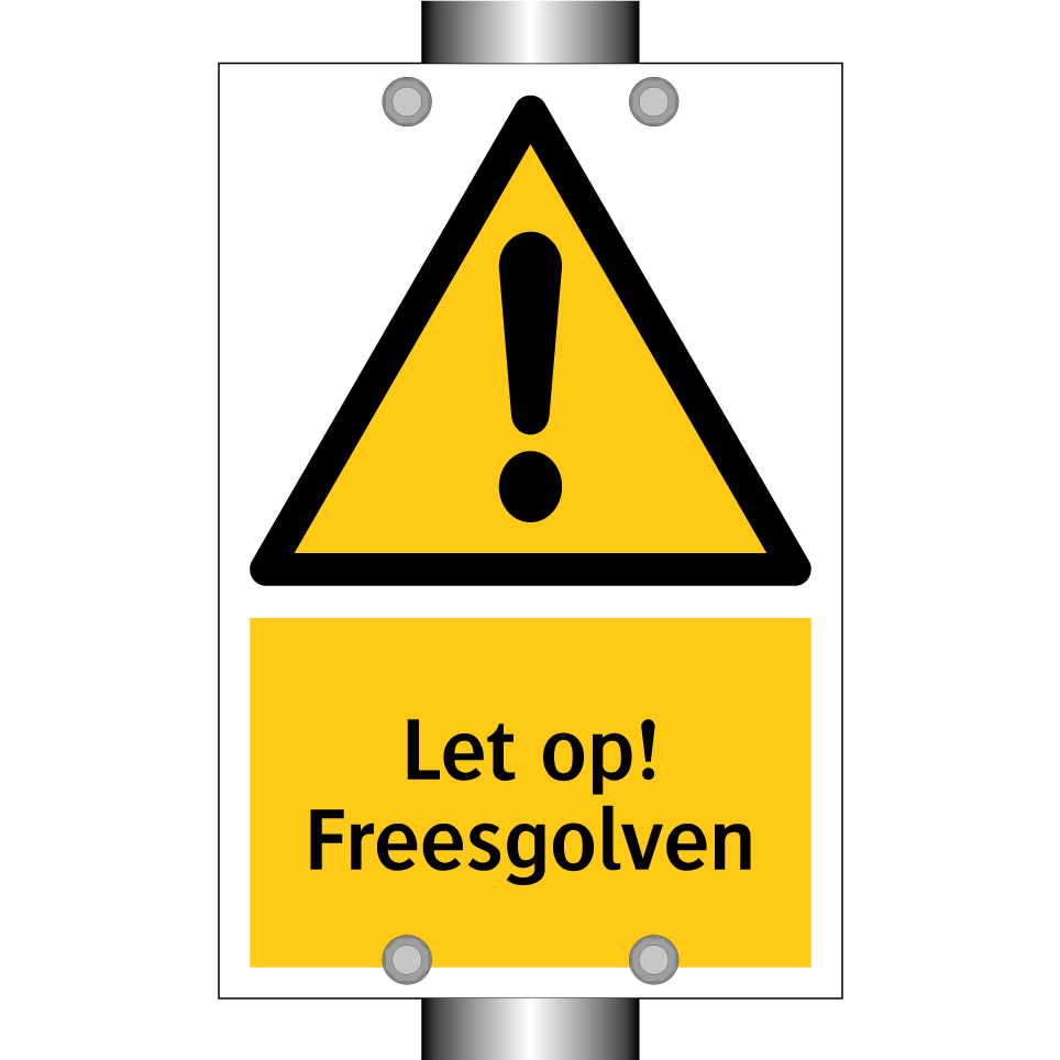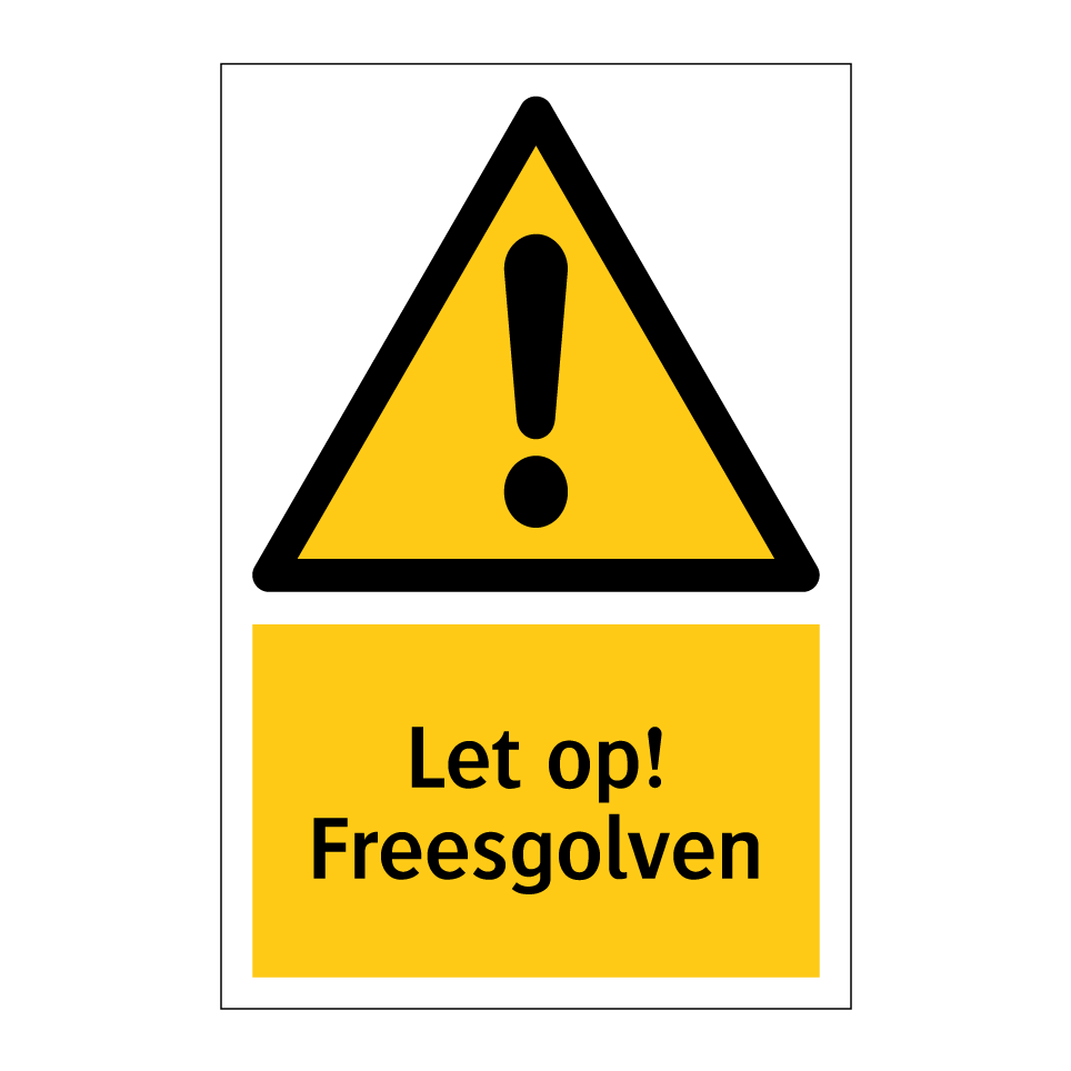 Waarschuwingsbord met de tekst Let op! Freesgolven