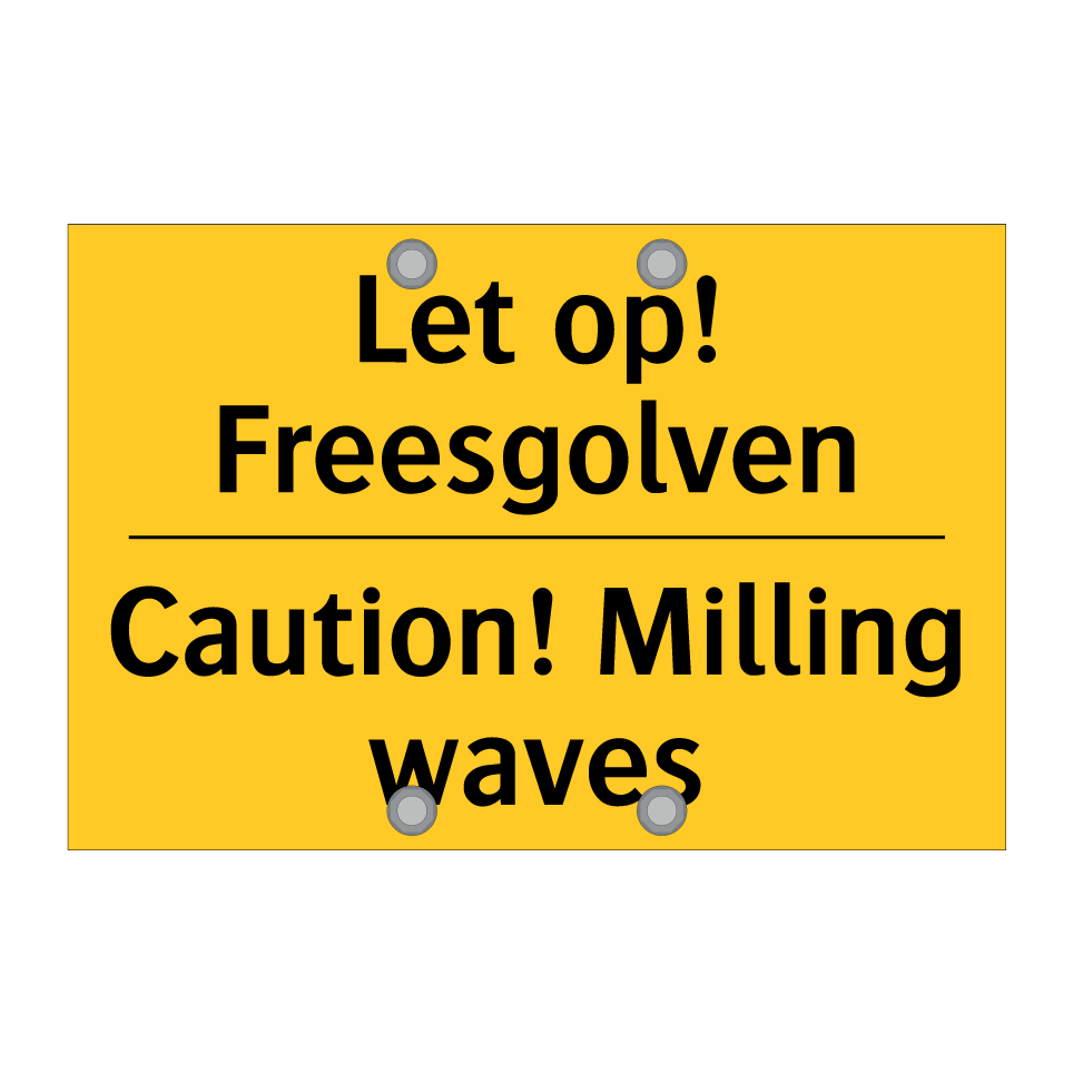 Waarschuwingsbord met de tekst Let op! Freesgolven / Caution! Milling waves