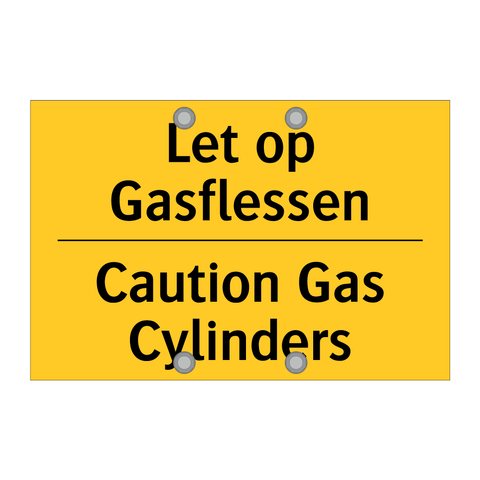 Waarschuwingsbord met de tekst Let op Gasflessen / Caution Gas Cylinders