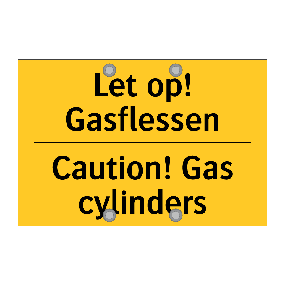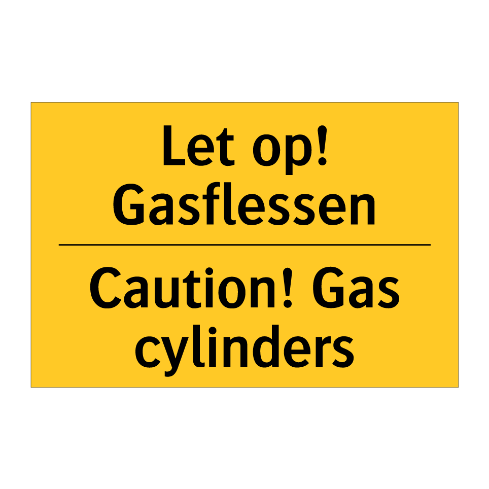 Waarschuwingsbord met de tekst Let op! Gasflessen / Caution! Gas cylinders