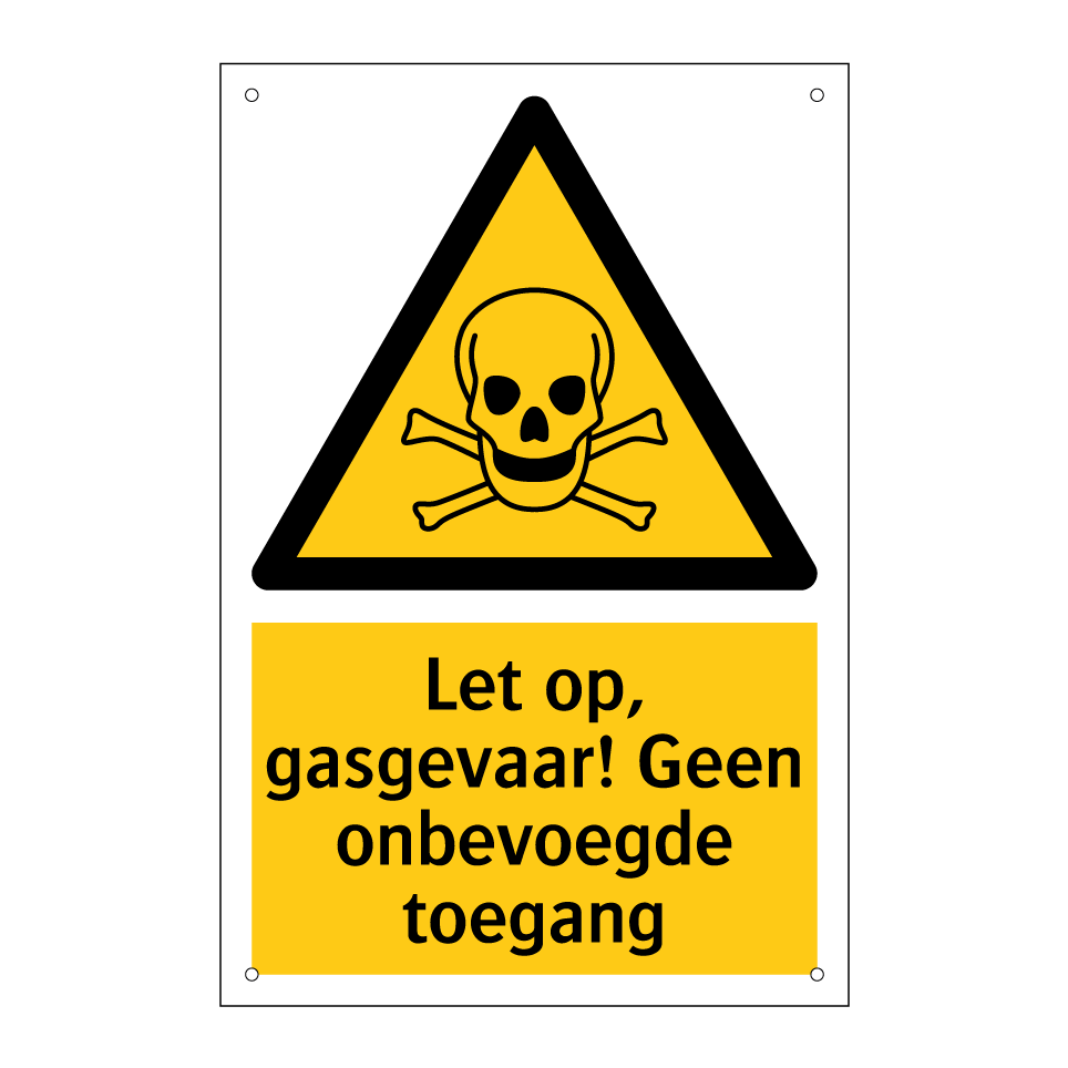 Waarschuwingsbord met de tekst Let op, gasgevaar! Geen onbevoegde toegang