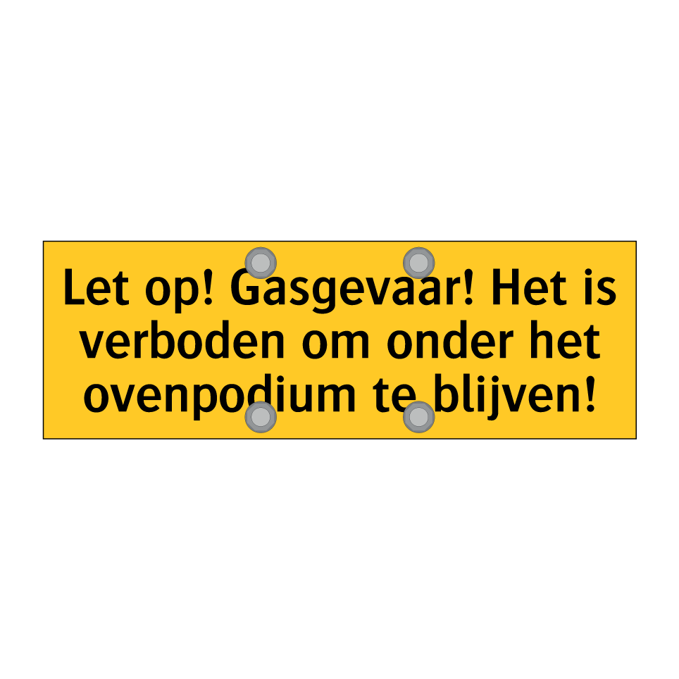 Deze waarschuwingsbord is essentieel voor de veiligheid in industriële omgevingen waar gasgevaar aanwezig is. Plaats deze bord op strategische locaties zoals bij ingangen van het ovenpodium of andere risicovolle gebieden om personeel te waarschuwen voor de gevaren van gas. Door de opvallende gele achtergrond en zwarte tekst trekt deze bord direct de aandacht en zorgt ervoor dat iedereen op de hoogte is van de verboden om onder het ovenpodium te blijven. Ideaal voor gebruik in fabrieken, werkplaatsen en andere industriële settings waar gaslekken een risico vormen. Zorg voor een veilige werkomgeving door deze waarschuwingsbord te installeren.