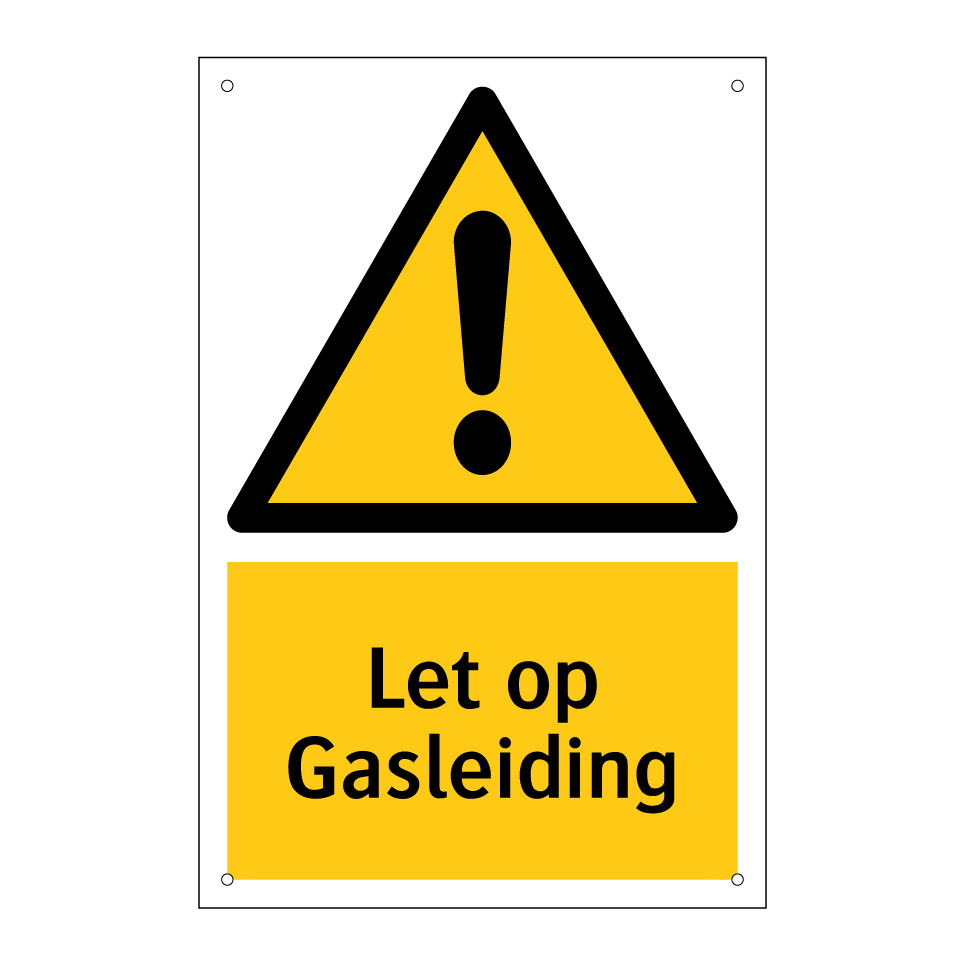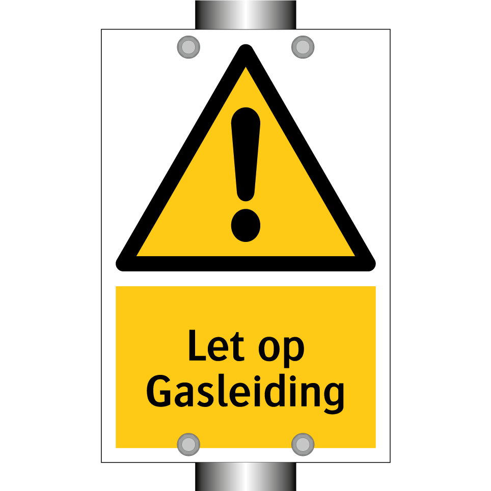 Waarschuwingsbord met de tekst Let op Gasleiding