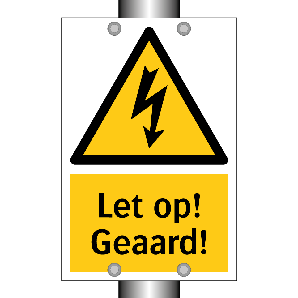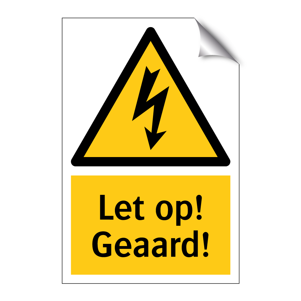 Waarschuwingsbord met de tekst Let op! Geaard!