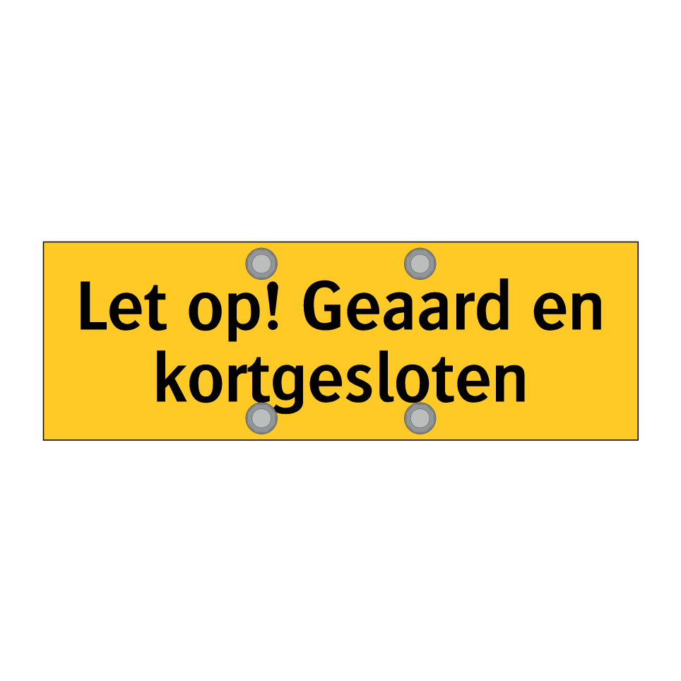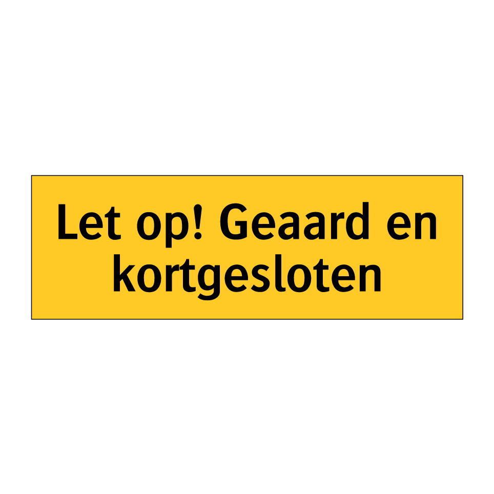 Waarschuwingsbord met de tekst Let op! Geaard en kortgesloten