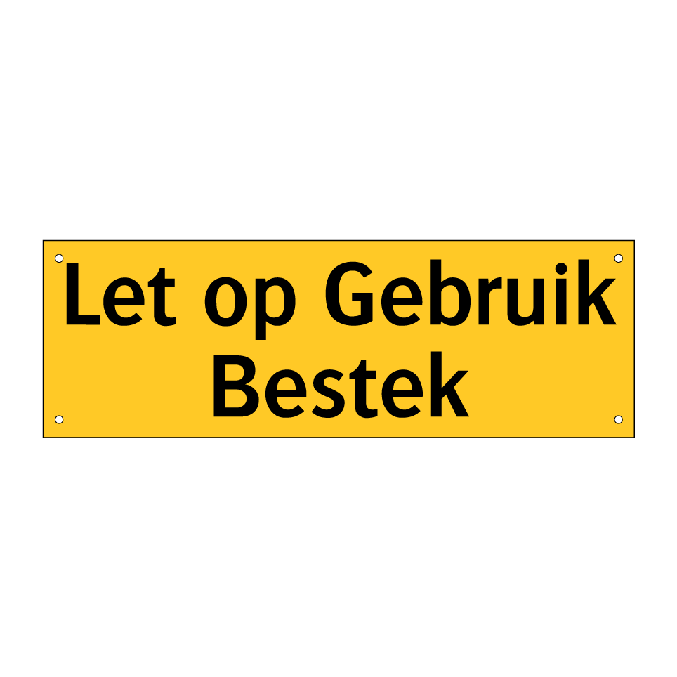 Waarschuwingsbord met de tekst Let op Gebruik Bestek