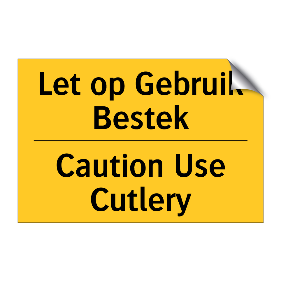 Waarschuwingsbord met de tekst Let op Gebruik Bestek / Caution Use Cutlery