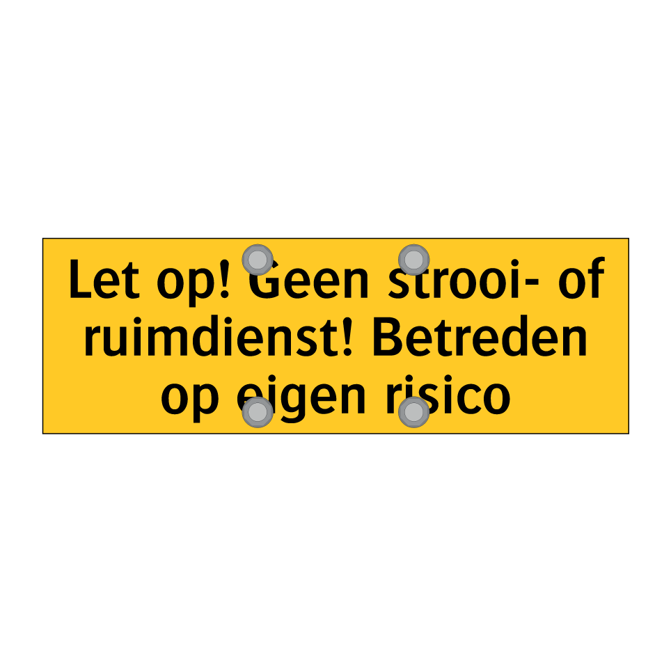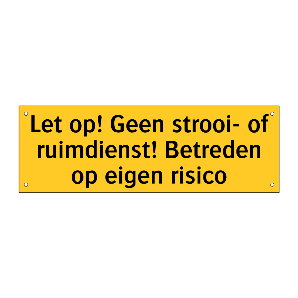 Waarschuwingsbord met de tekst Let op! Geen strooi- of ruimdienst! Betreden op eigen risico