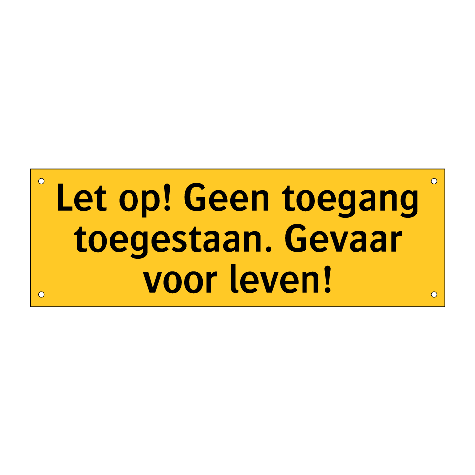 Waarschuwingsbord met de tekst Let op! Geen toegang toegestaan. Gevaar voor leven!