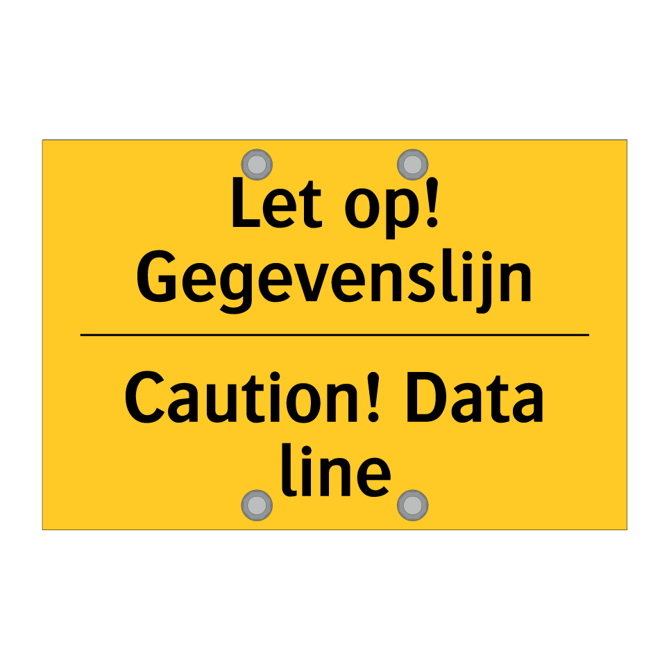 Waarschuwingsbord met de tekst Let op! Gegevenslijn / Caution! Data line