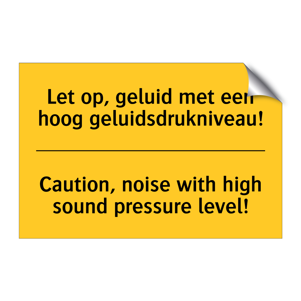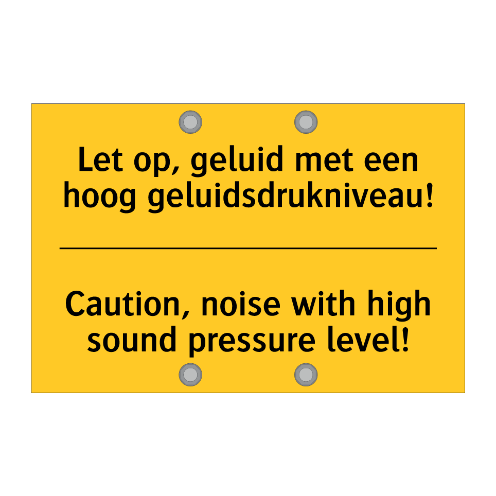 Waarschuwingsbord met de tekst Let op, geluid met een hoog geluidsdrukniveau! / Caution, noise with high sound pressure level!