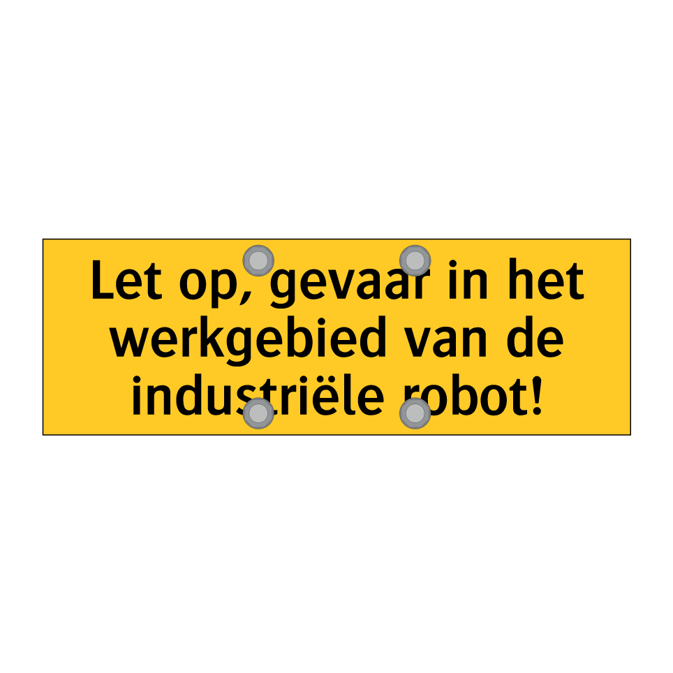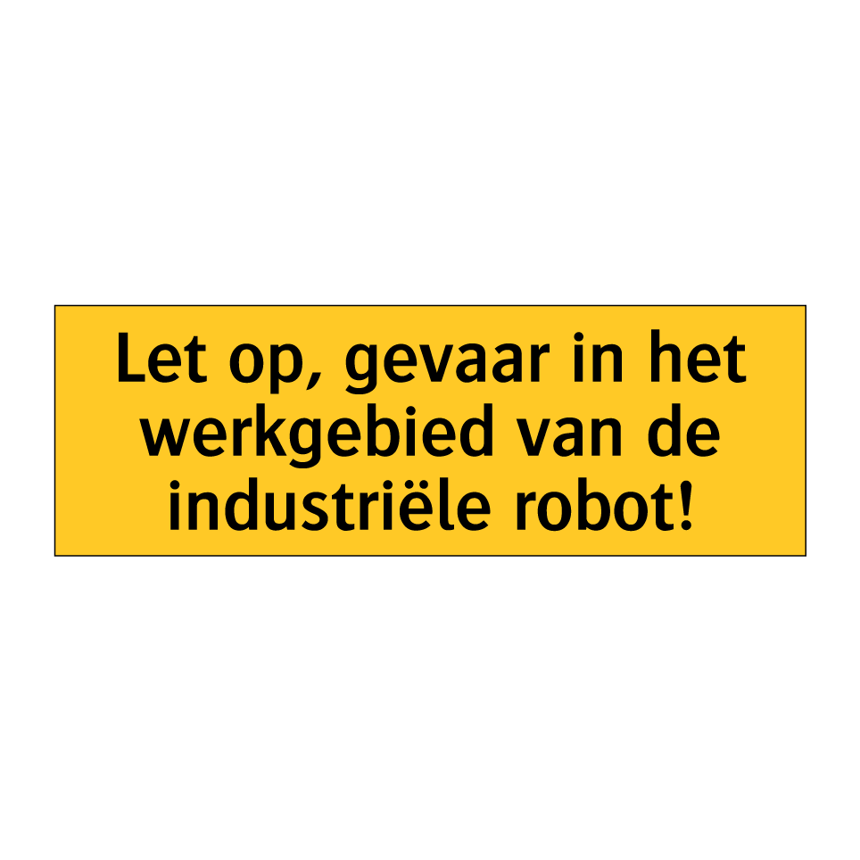 Deze waarschuwingsbord is essentieel voor de veiligheid in industriële omgevingen waar robots actief zijn. Plaats deze bord op zichtbare locaties in werkgebieden om werknemers te waarschuwen voor mogelijke gevaren. Ideaal voor fabrieken, magazijnen en andere industriële ruimtes waar automatisering en robotica worden gebruikt. Door de opvallende gele achtergrond en zwarte tekst trekt deze bord direct de aandacht en helpt het ongevallen te voorkomen. Zorg ervoor dat iedereen in de buurt van de werkende robots zich bewust is van de risico's en de nodige voorzorgsmaatregelen neemt. Veiligheid eerst met deze duidelijke en effectieve waarschuwingsbord.