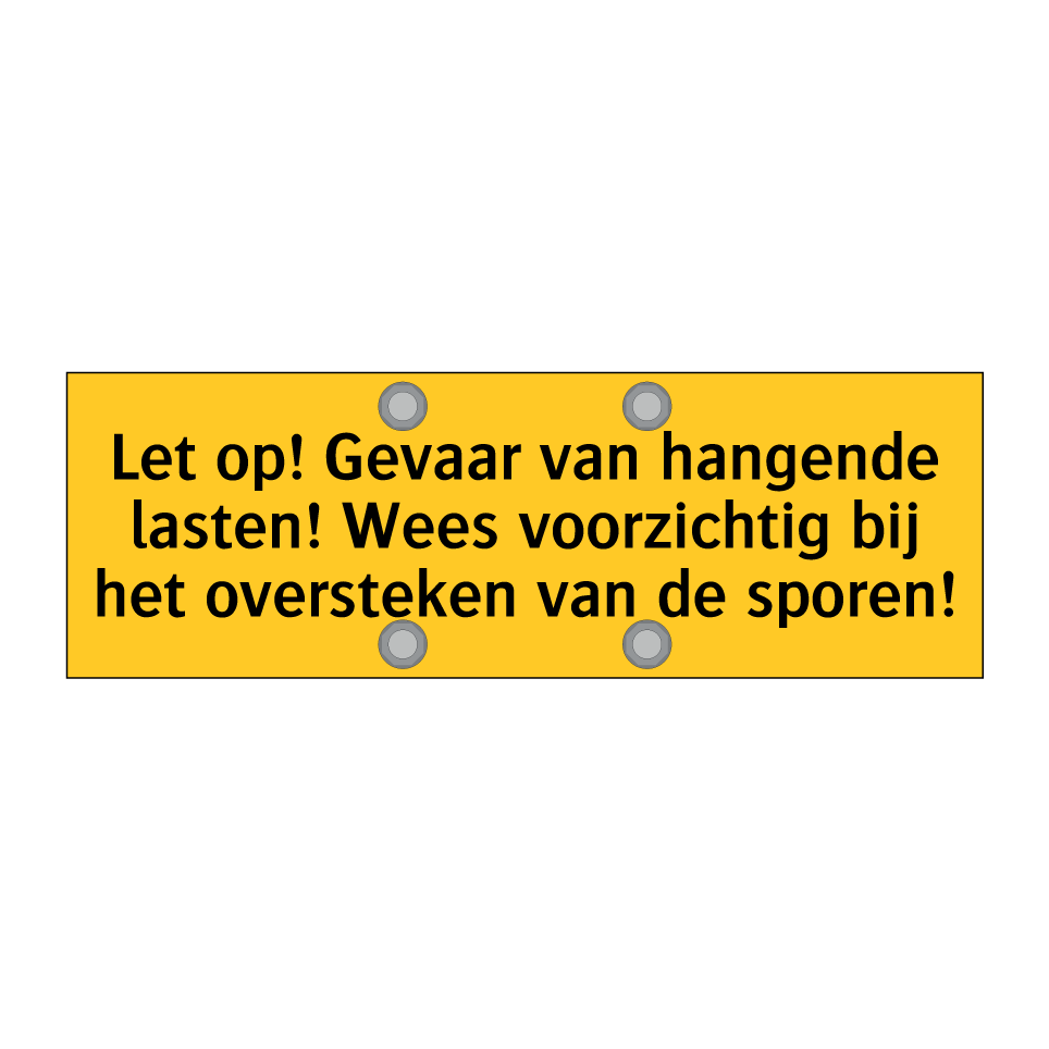 Deze waarschuwingsbord is essentieel voor het waarborgen van de veiligheid in gebieden waar zware lasten worden verplaatst. Plaats deze bord op strategische locaties zoals bouwplaatsen, magazijnen, en industriële omgevingen waar hangende lasten een risico vormen. Het heldere gele achtergrond en de zwarte tekst zorgen ervoor dat de waarschuwing duidelijk zichtbaar is, zelfs van een afstand. Dit waarschuwingsbord helpt ongelukken te voorkomen door mensen te waarschuwen voor het gevaar van hangende lasten en hen aan te moedigen voorzichtig te zijn bij het oversteken van sporen. Ideaal voor gebruik in omgevingen waar veiligheid de hoogste prioriteit heeft.