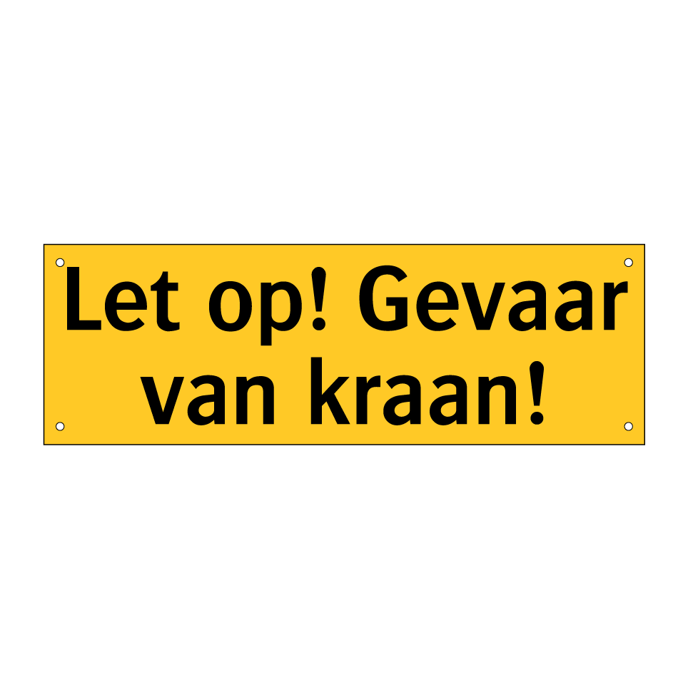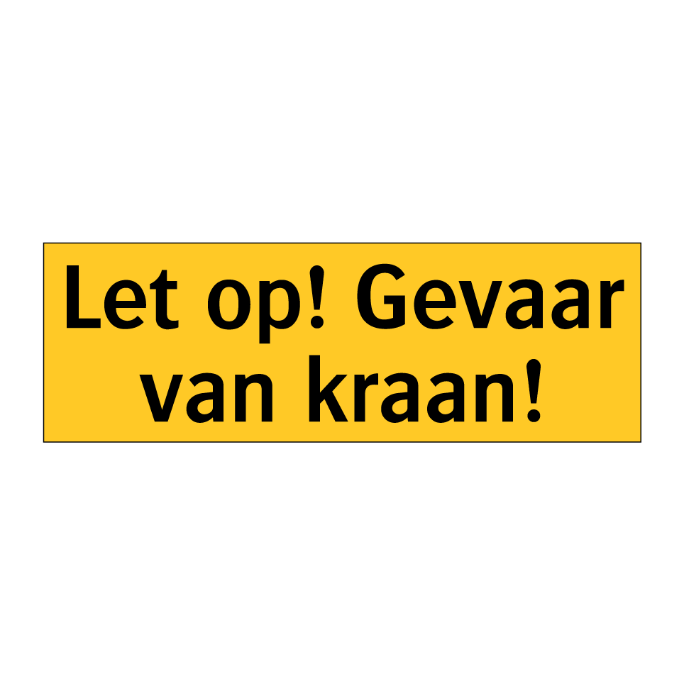 Waarschuwingsbord met de tekst Let op! Gevaar van kraan!