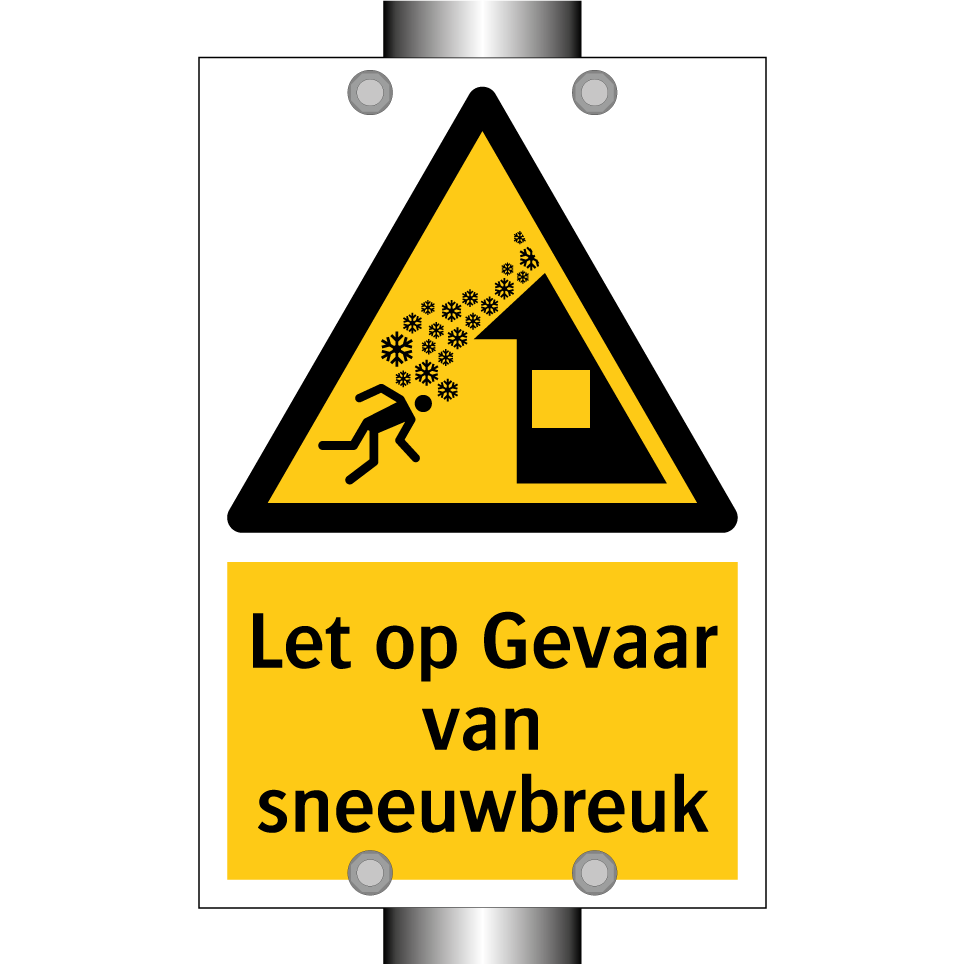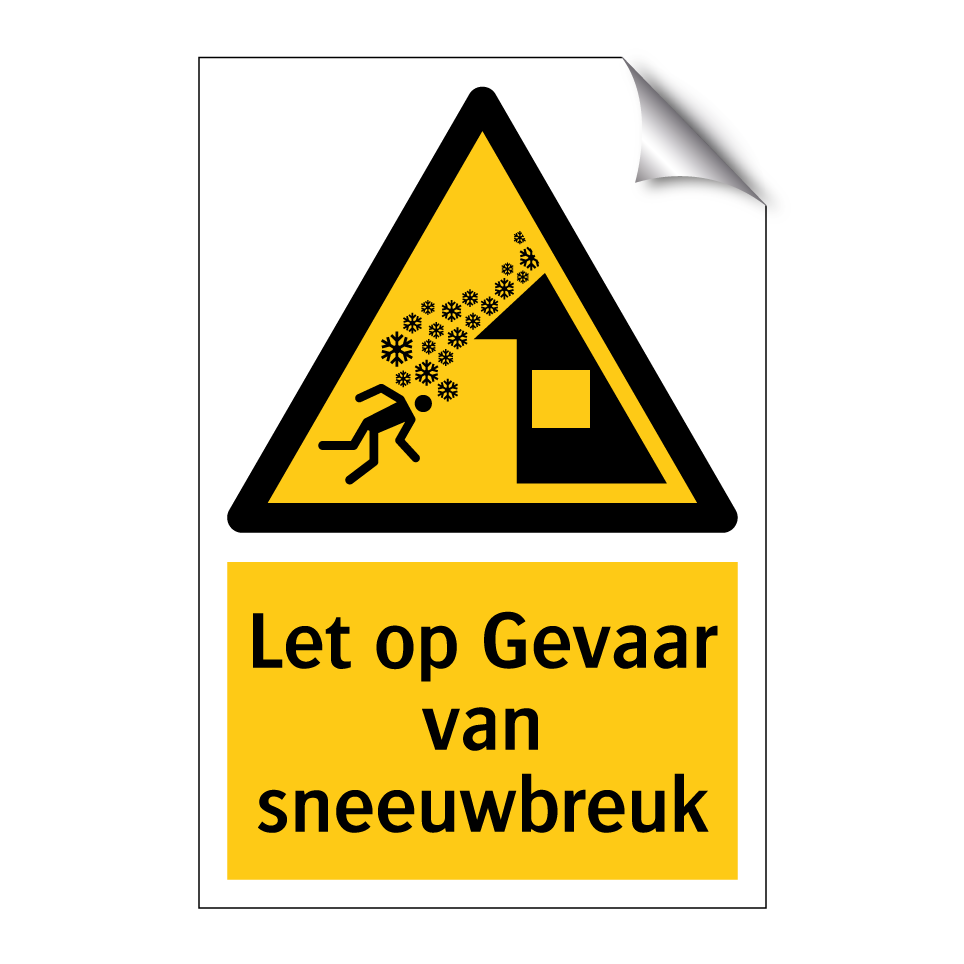 Waarschuwingsbord met de tekst Let op Gevaar van sneeuwbreuk