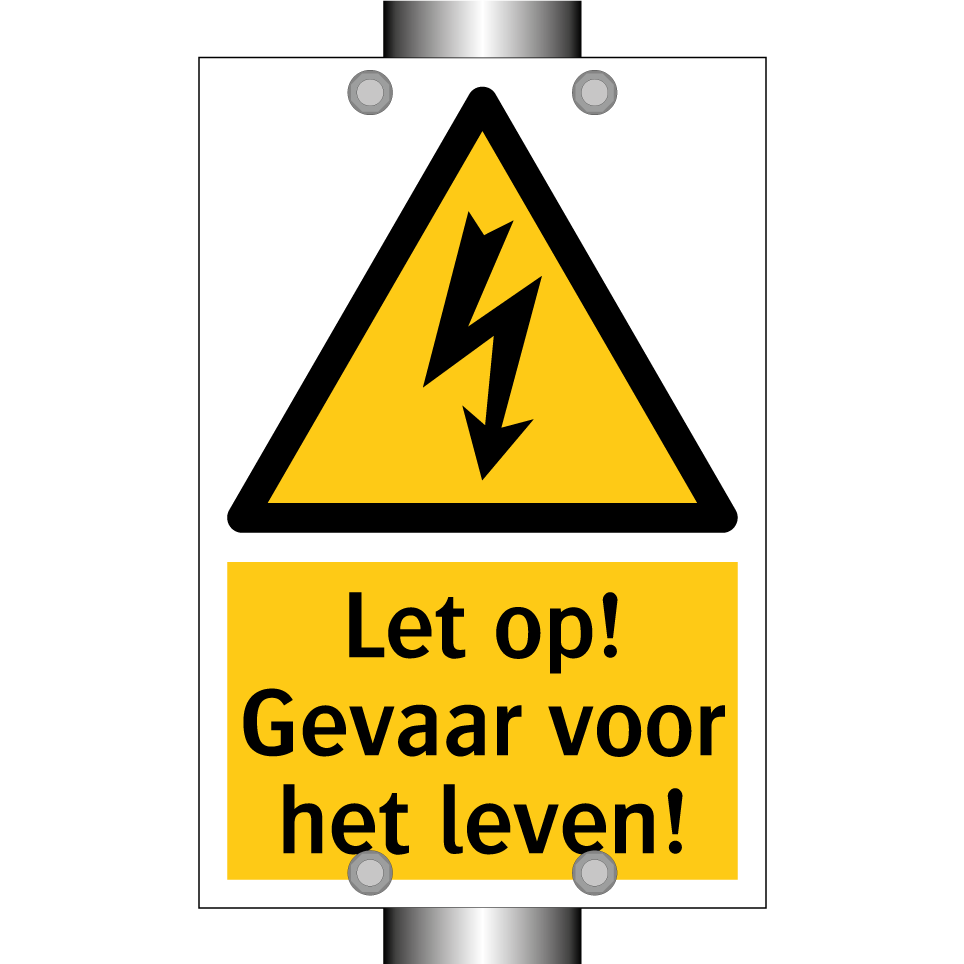 Waarschuwingsbord met de tekst Let op! Gevaar voor het leven!