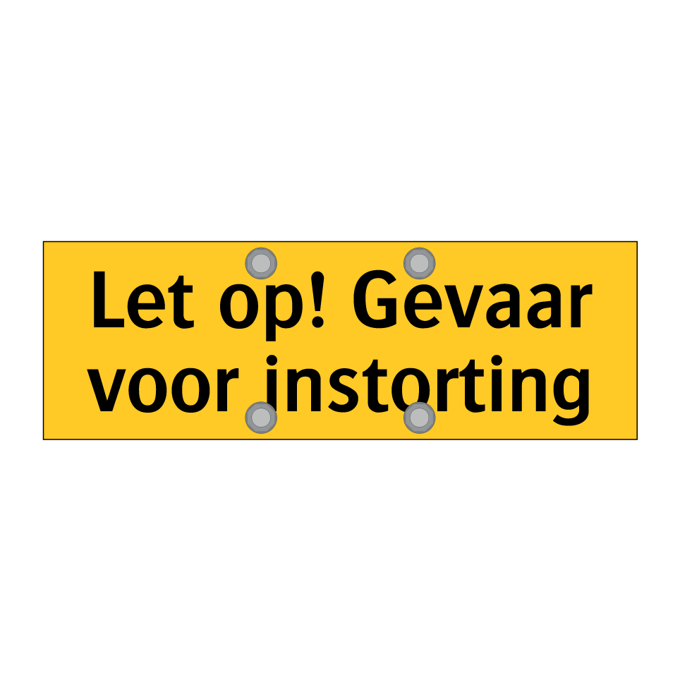 Waarschuwingsbord met de tekst Let op! Gevaar voor instorting