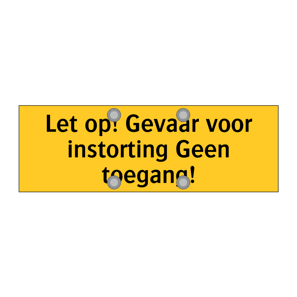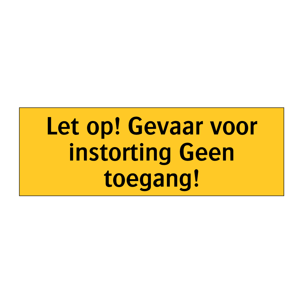 Waarschuwingsbord met de tekst Let op! Gevaar voor instorting Geen toegang!